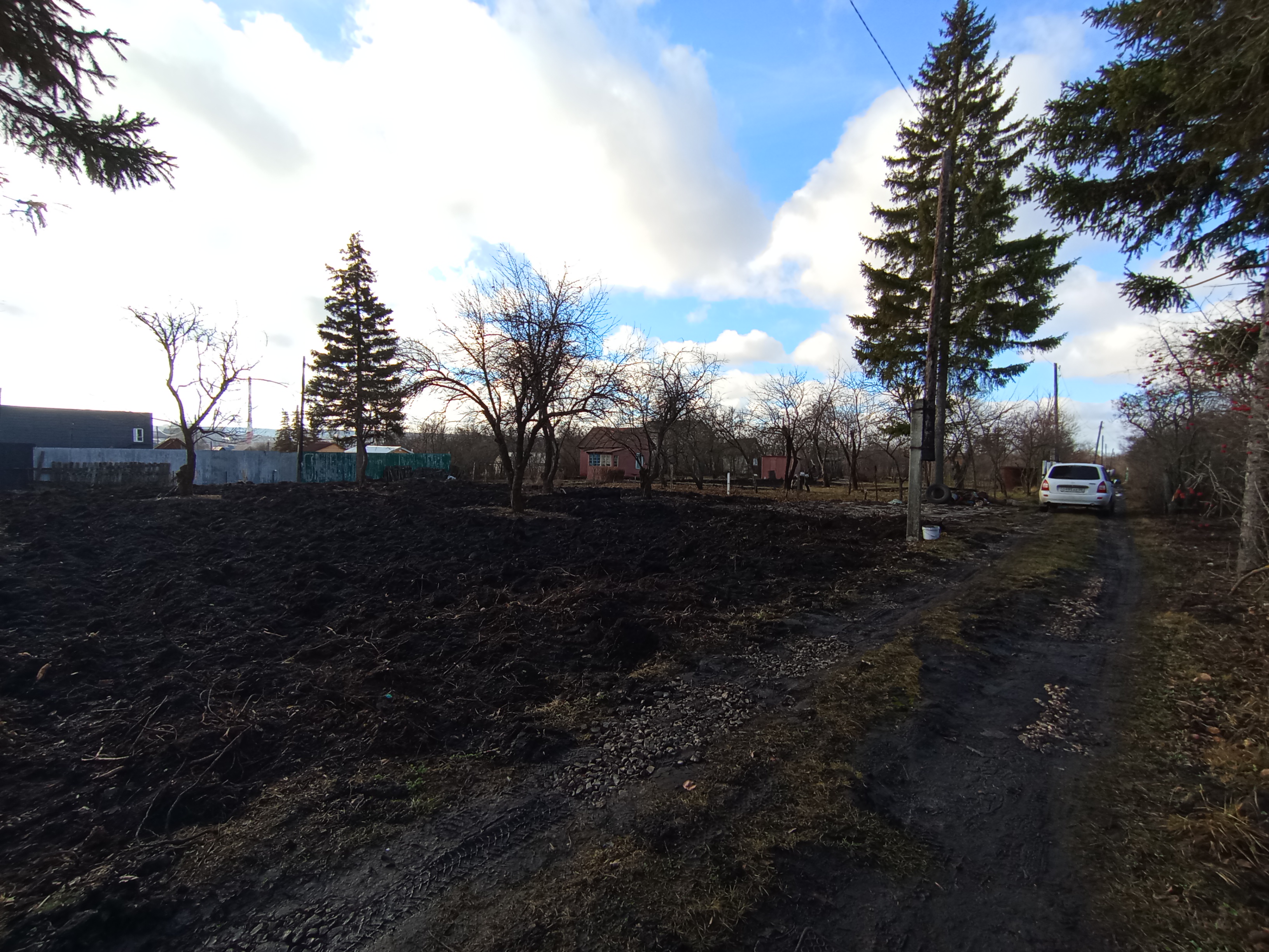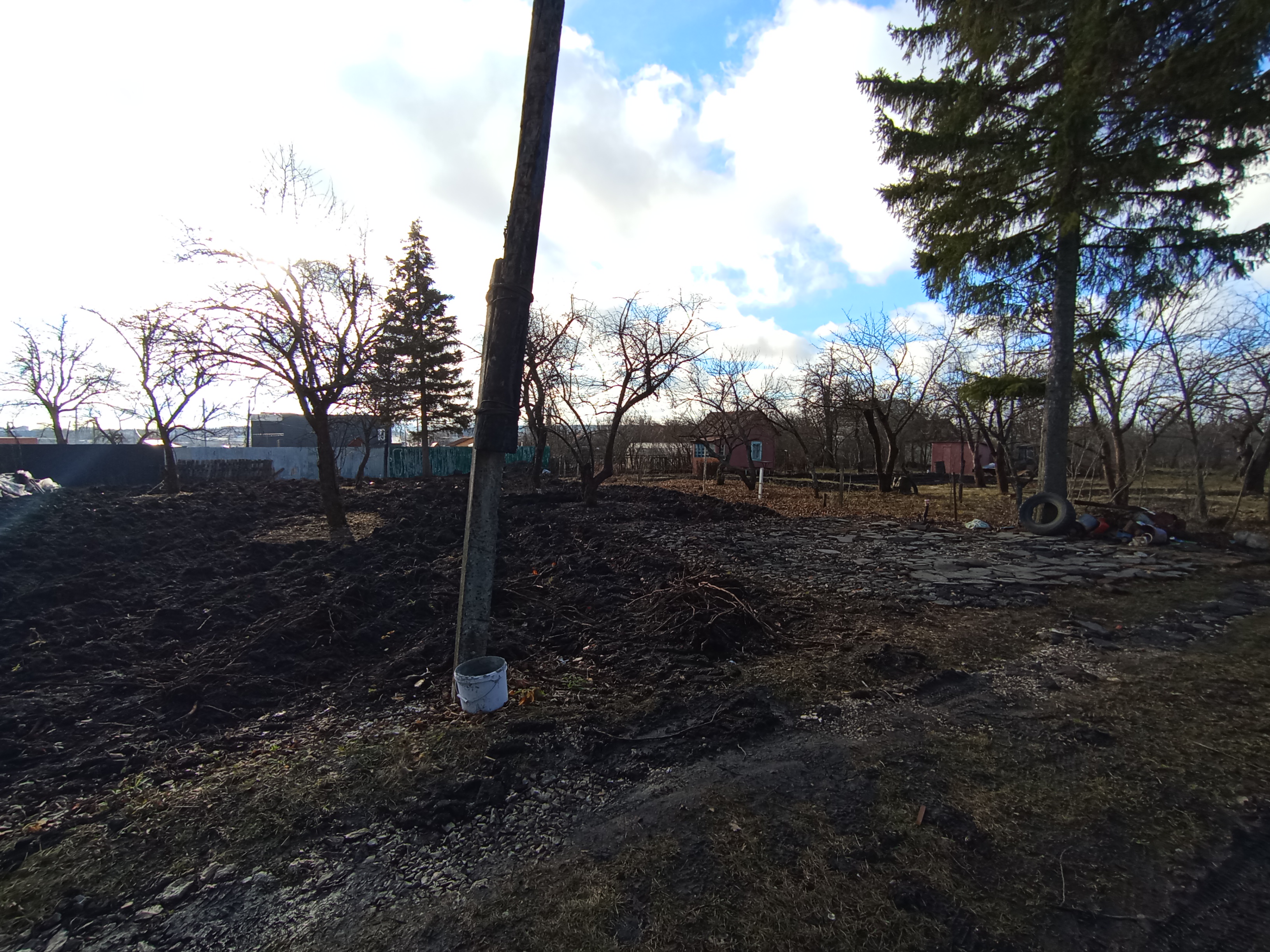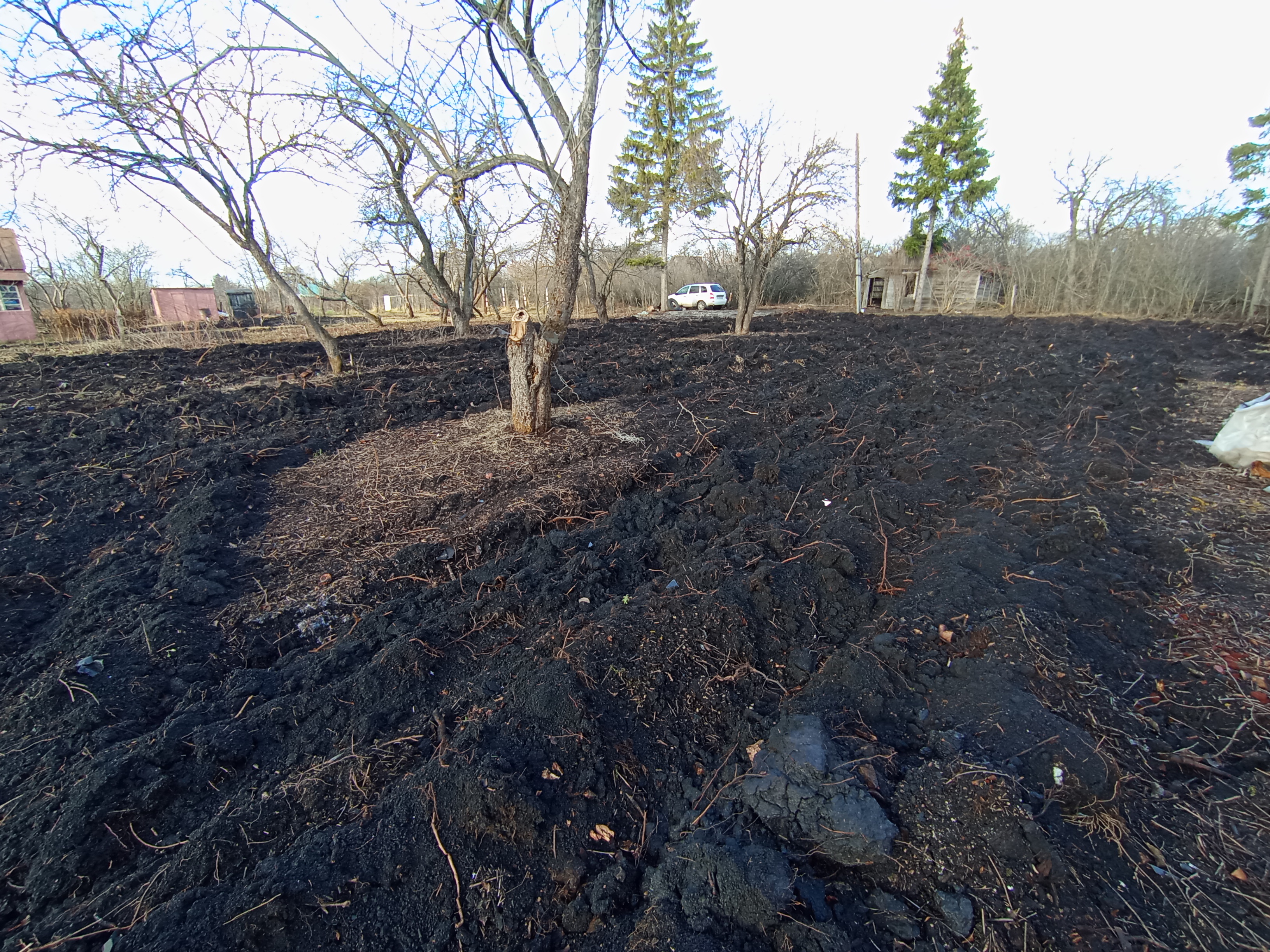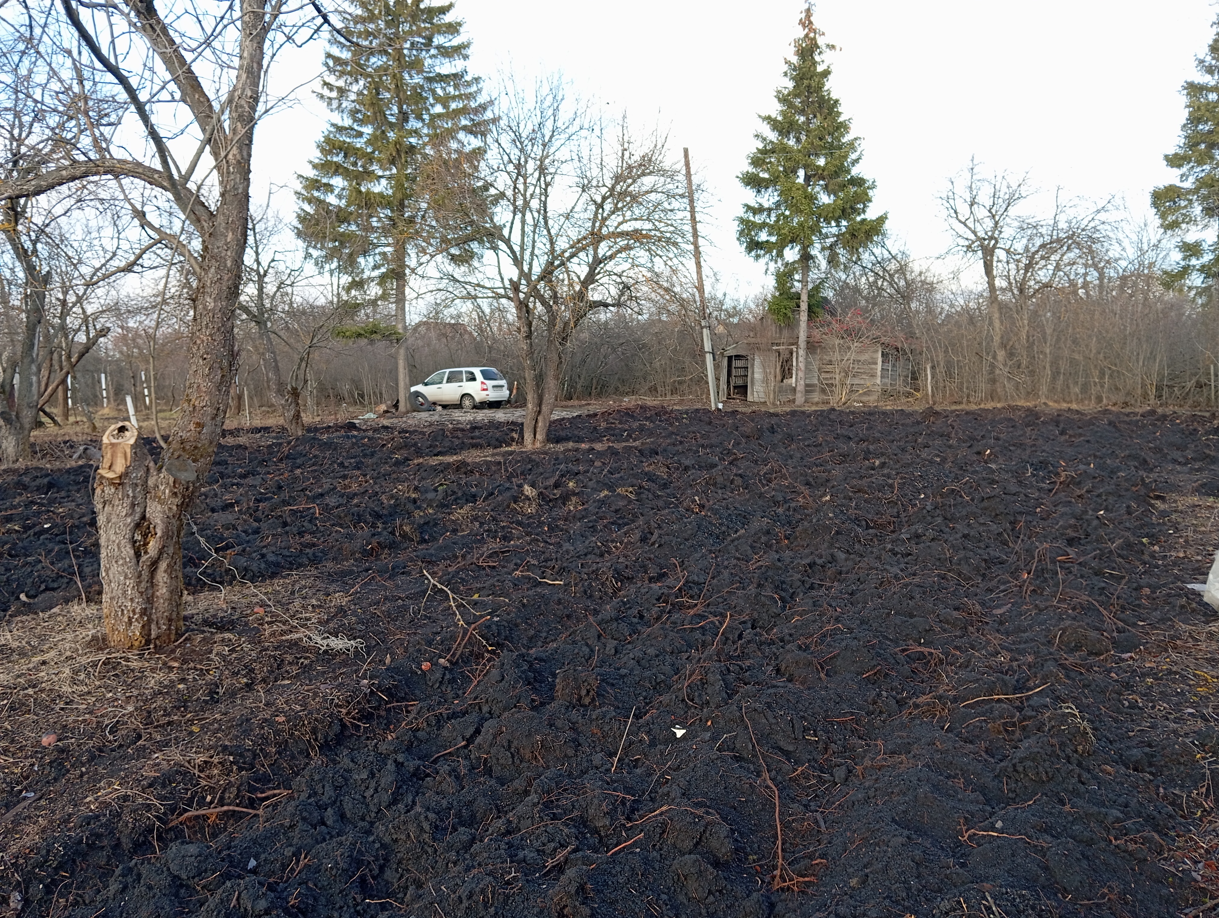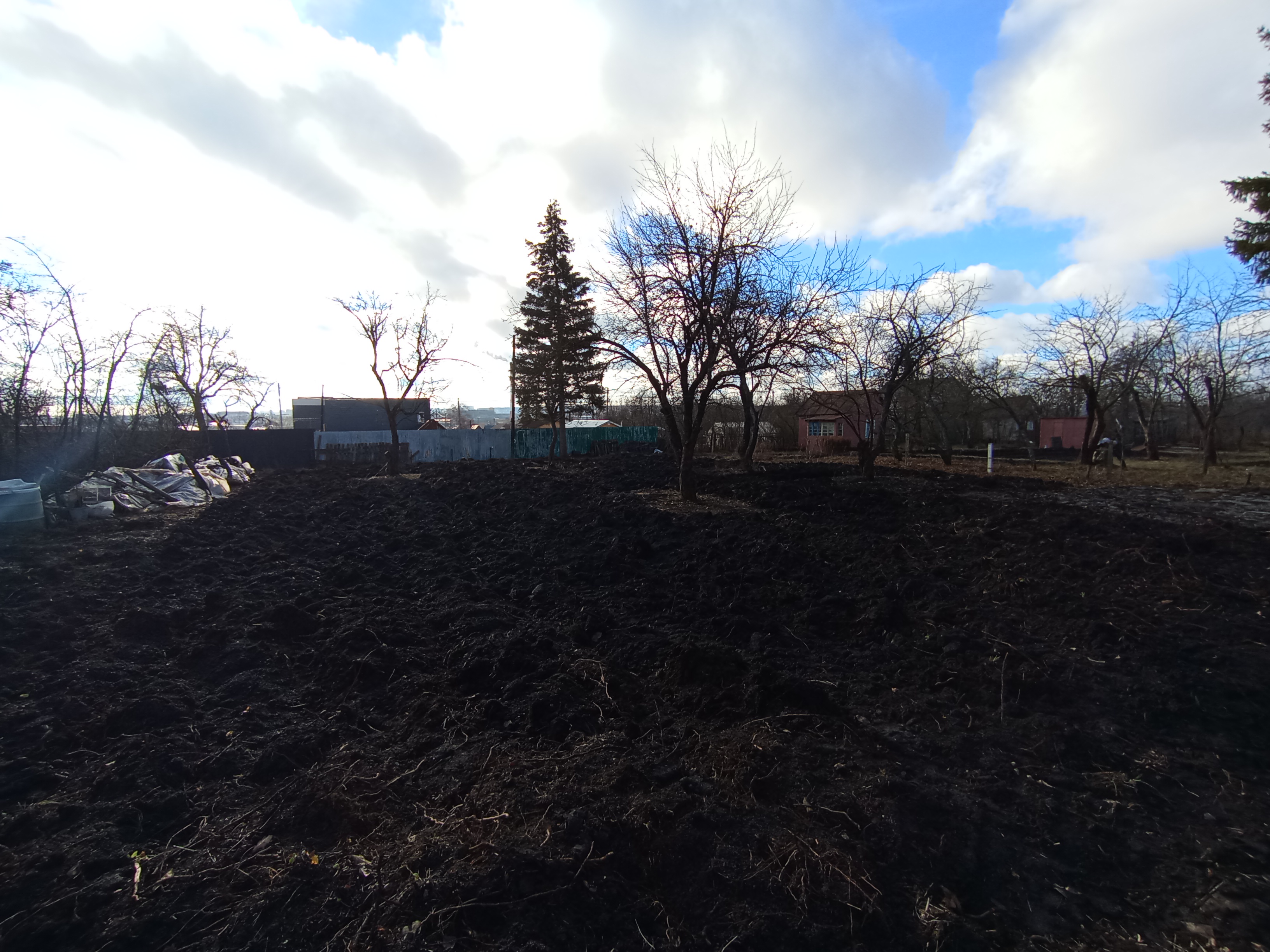 Домик был 15 кв.м. (разобрали под сарай). Дачный участок не использовался лет 10, в этом году выкорчевали корни и вспахали. Отсыпано парковочое место, выкопана яма для туалета.