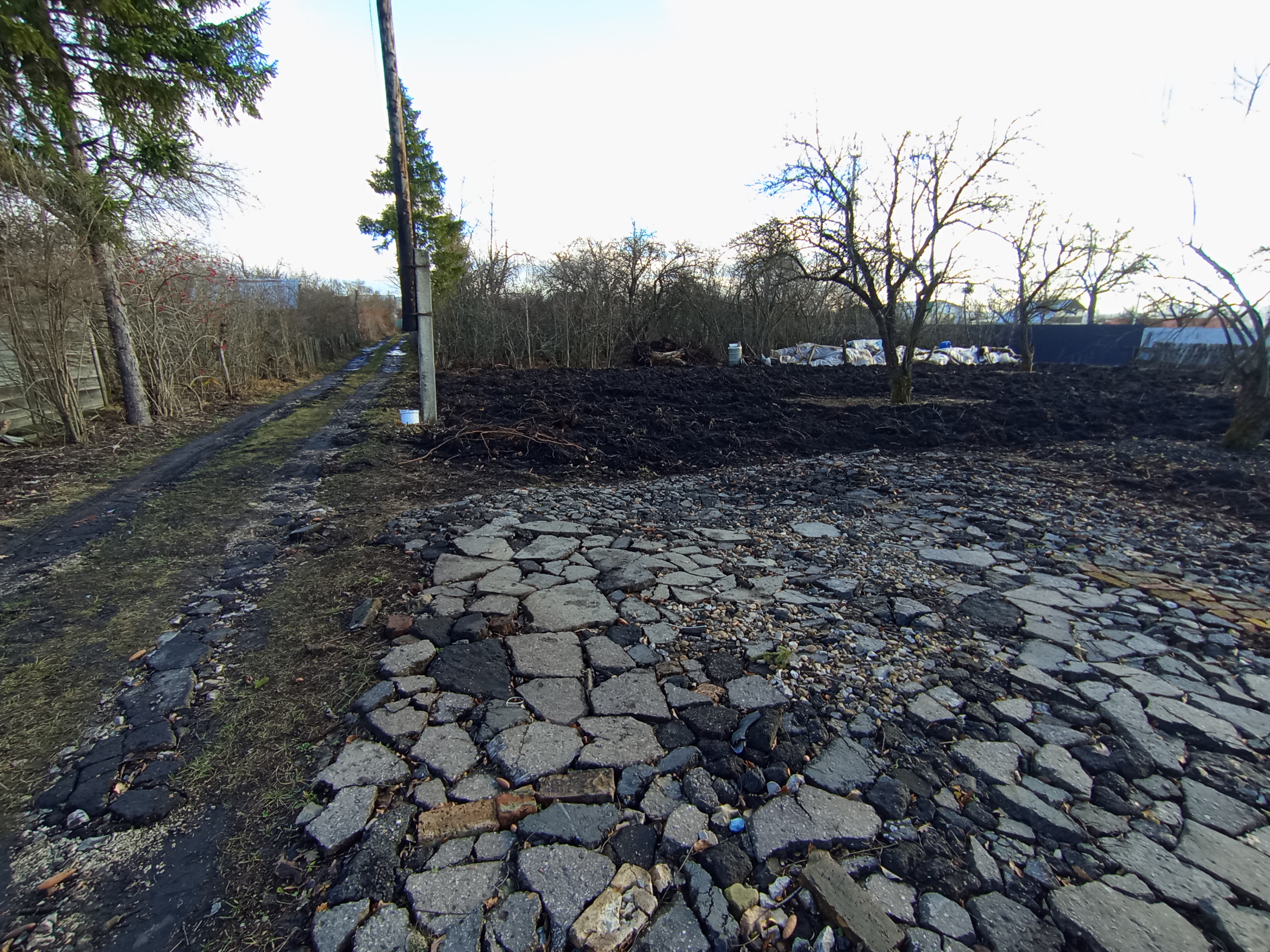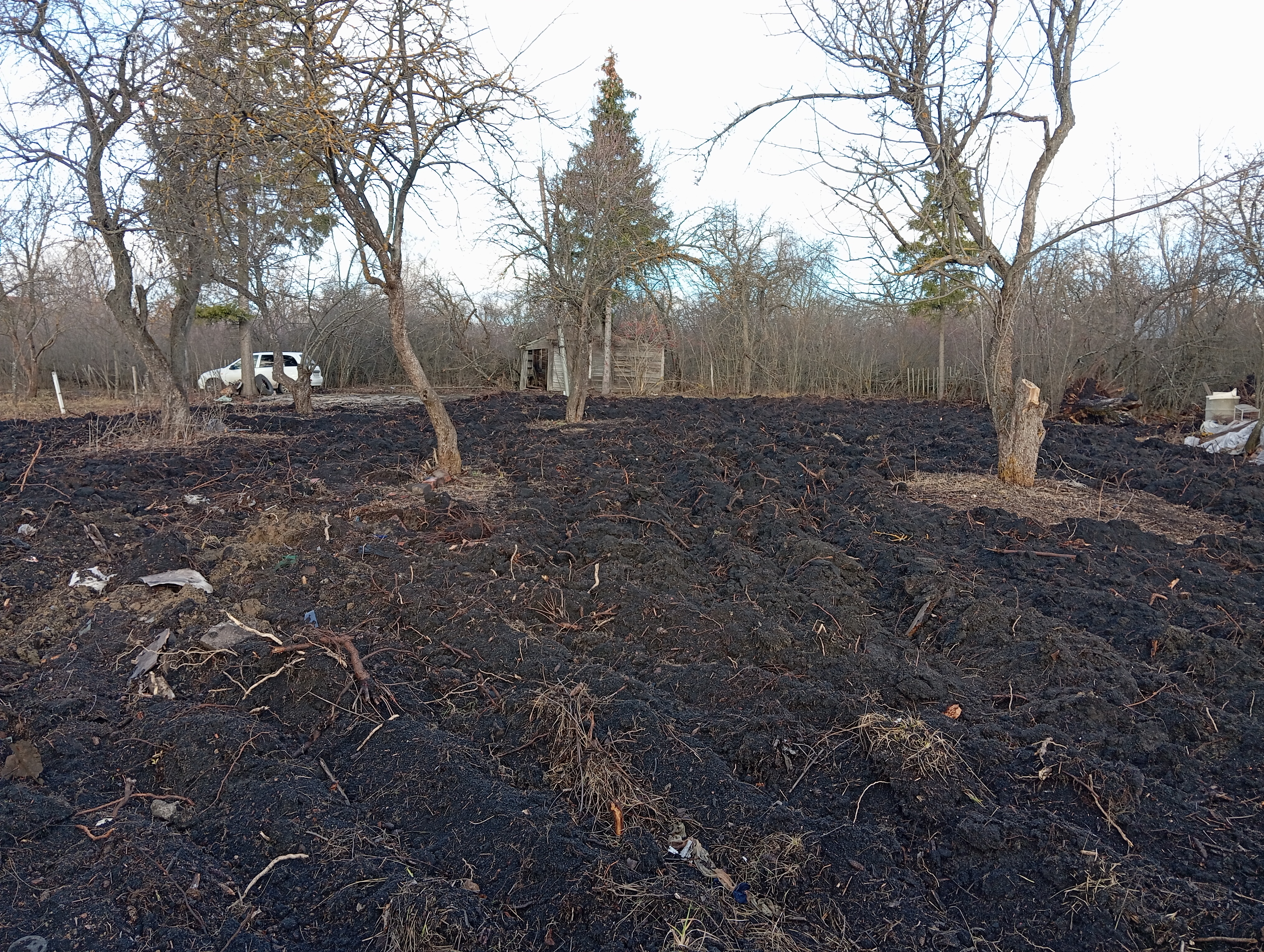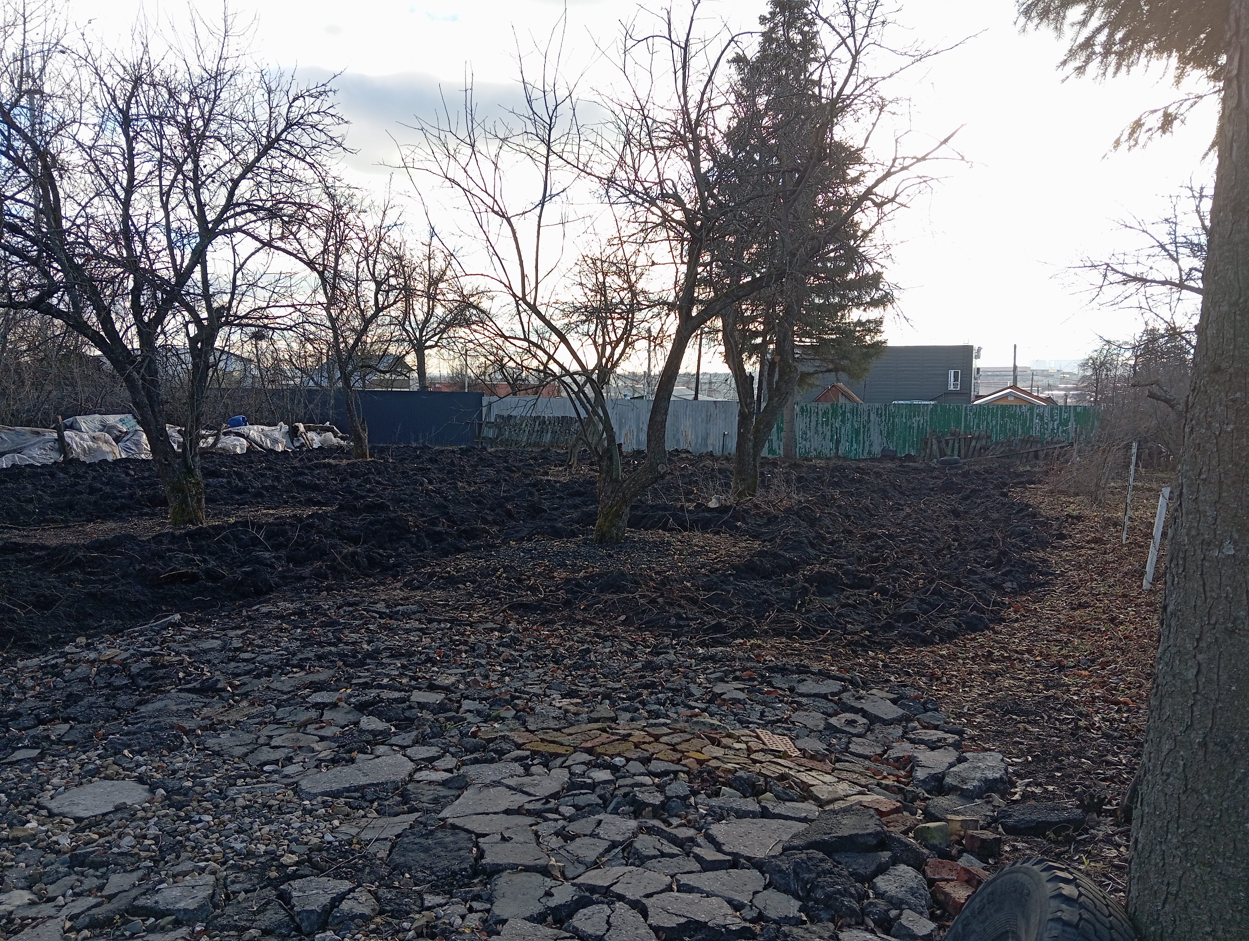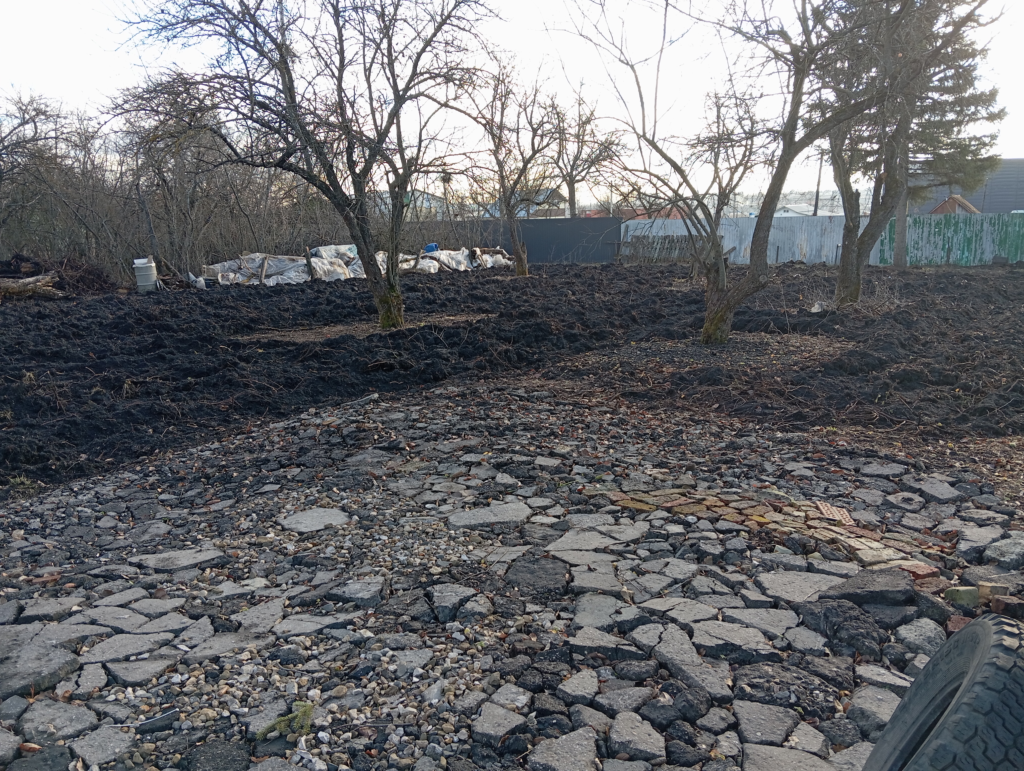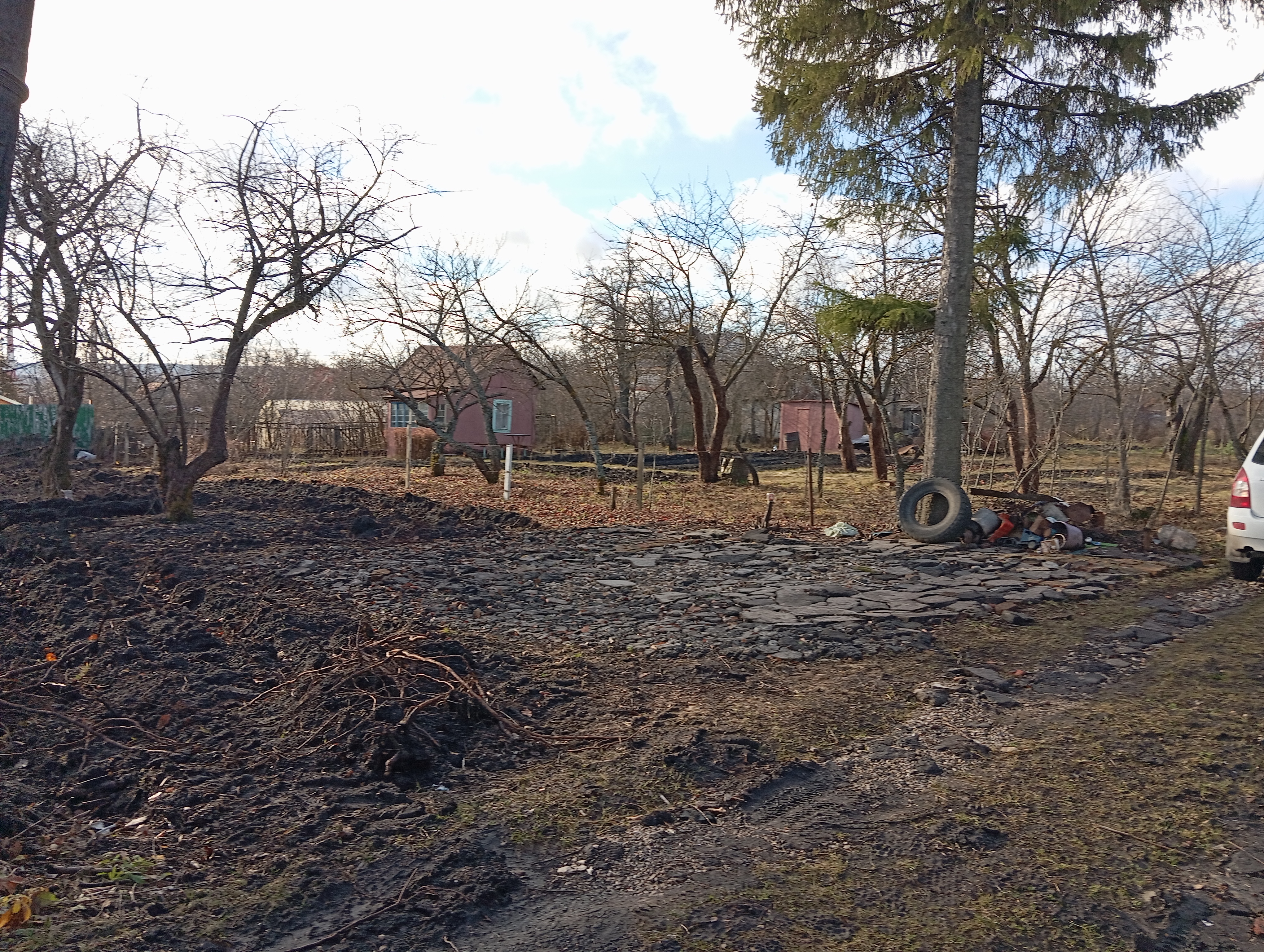 Домик был 15 кв.м. (разобрали под сарай). Дачный участок не использовался лет 10, в этом году выкорчевали корни и вспахали. Отсыпано парковочое место, выкопана яма для туалета.