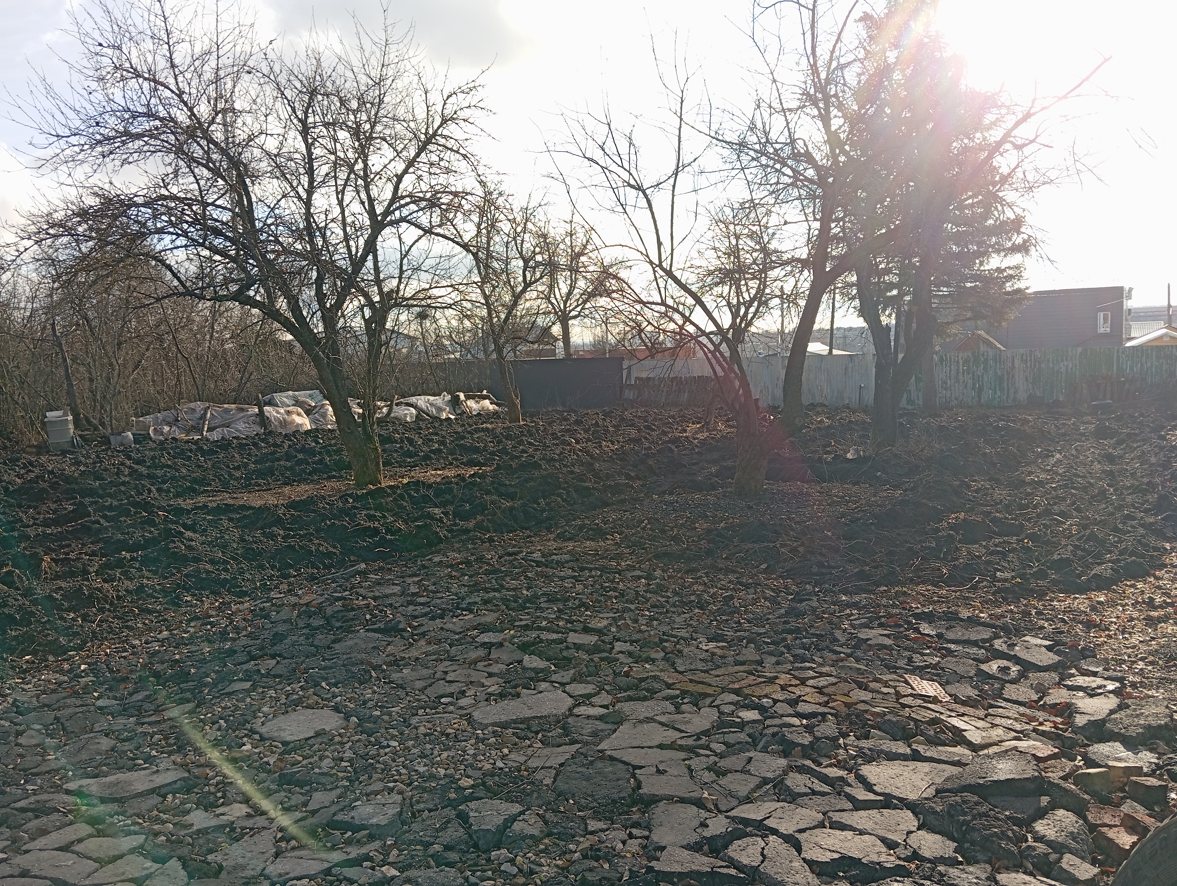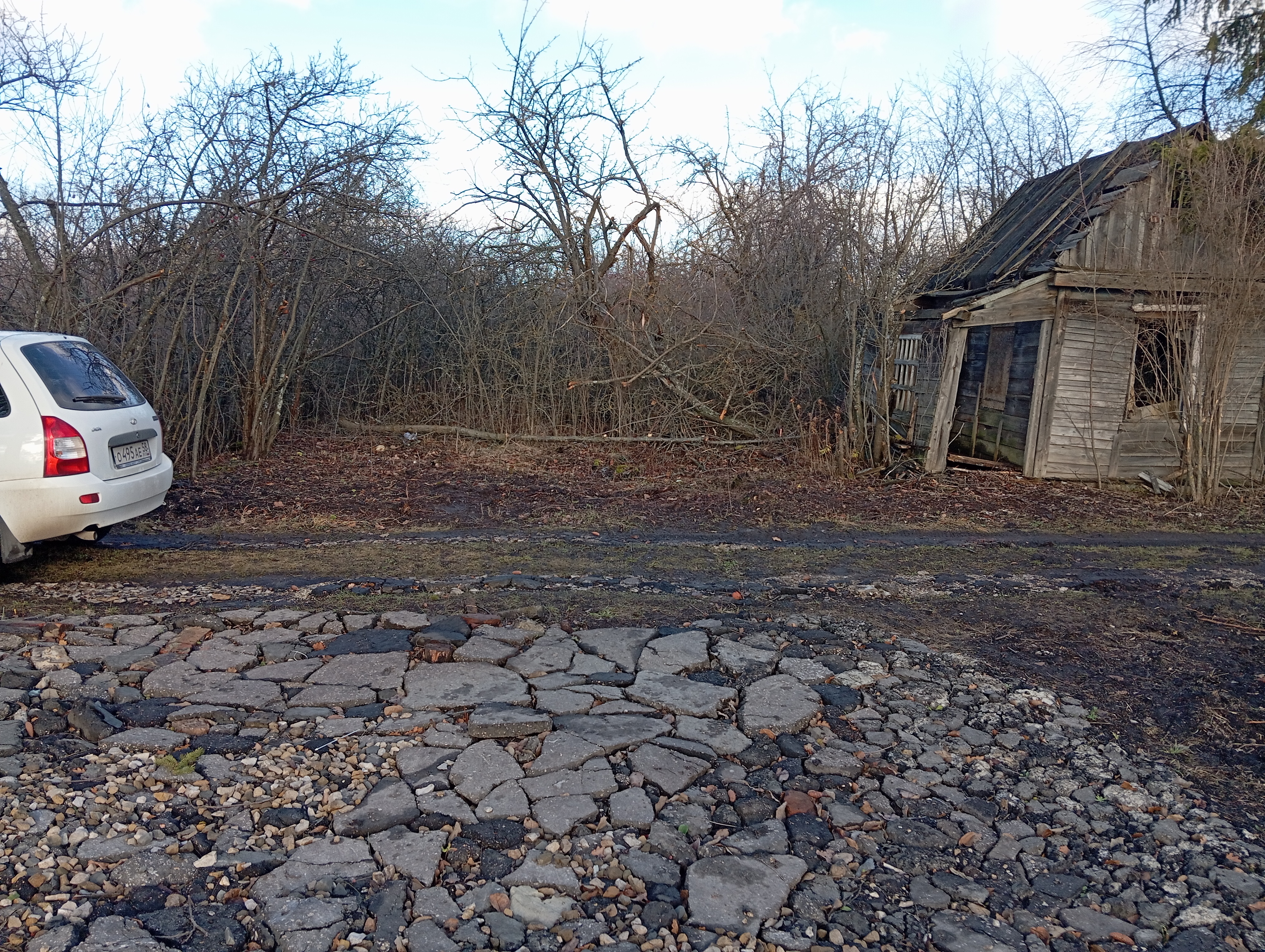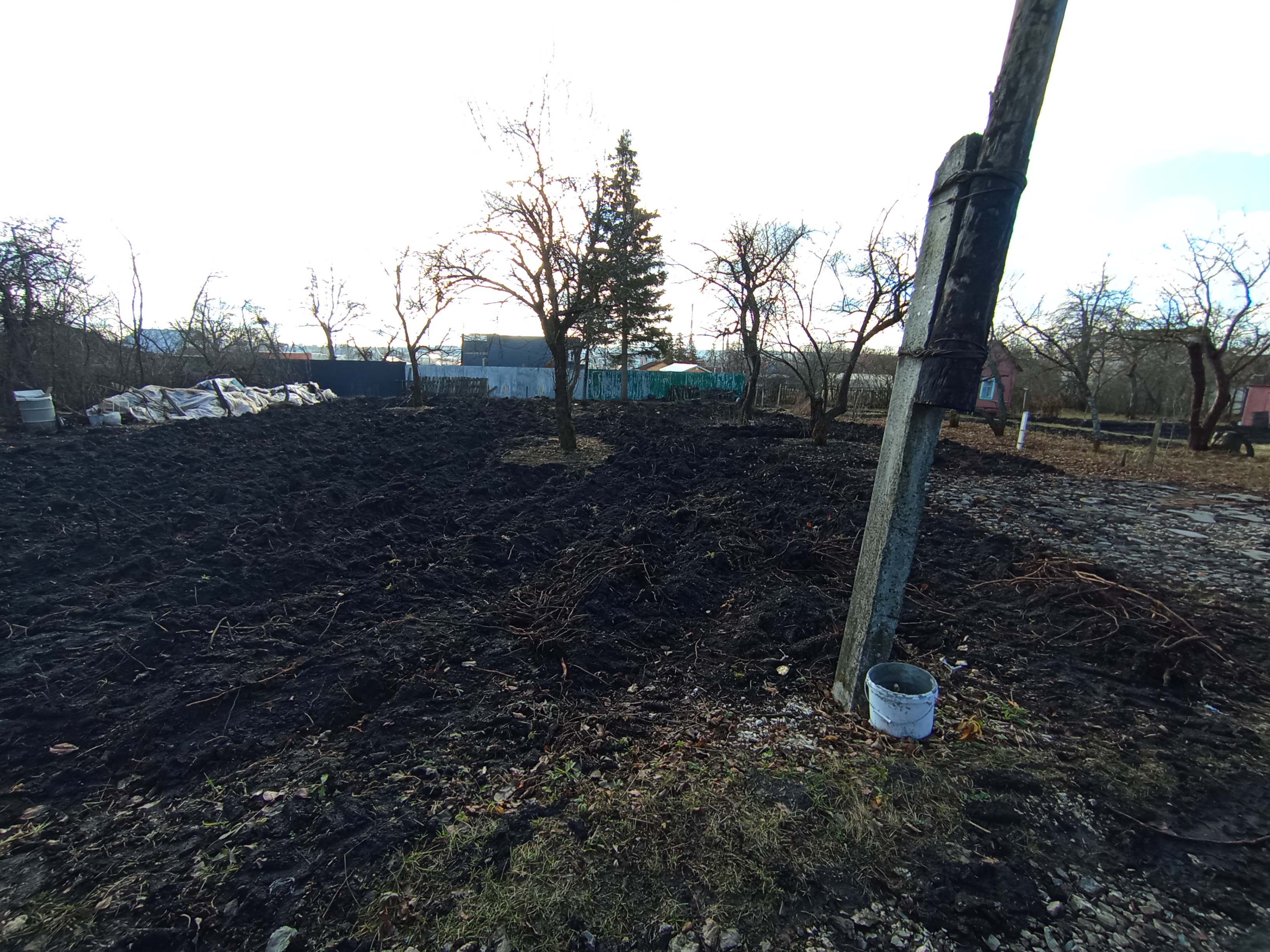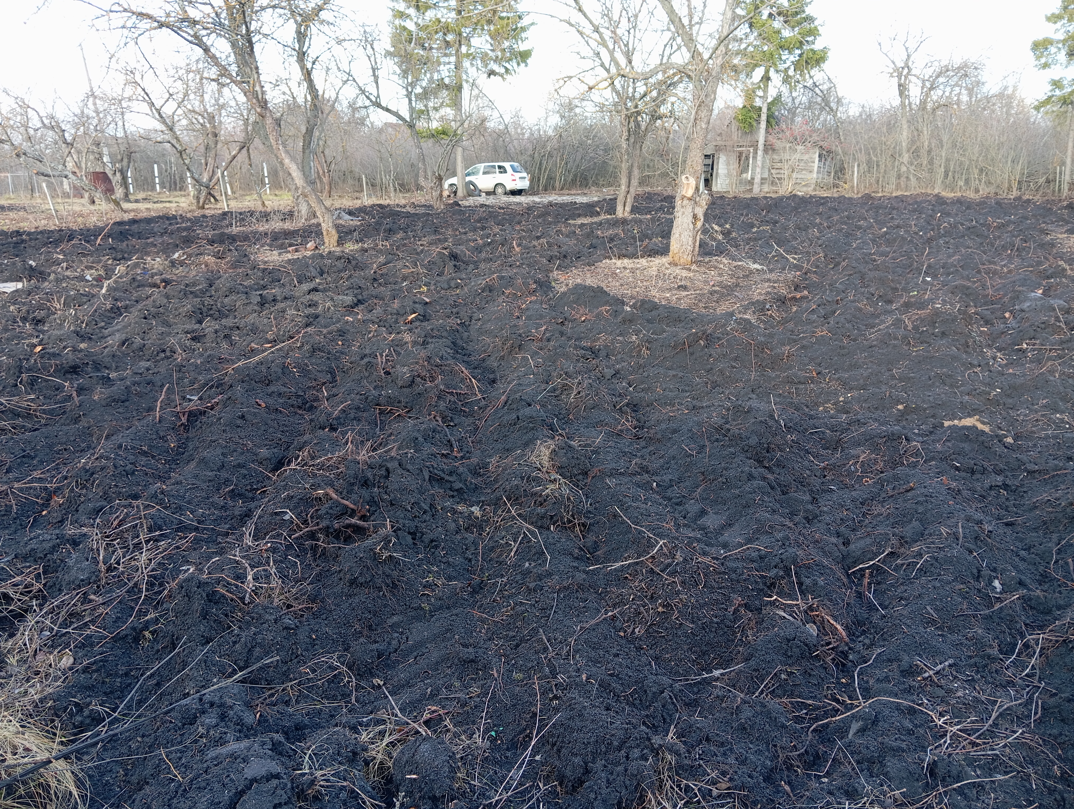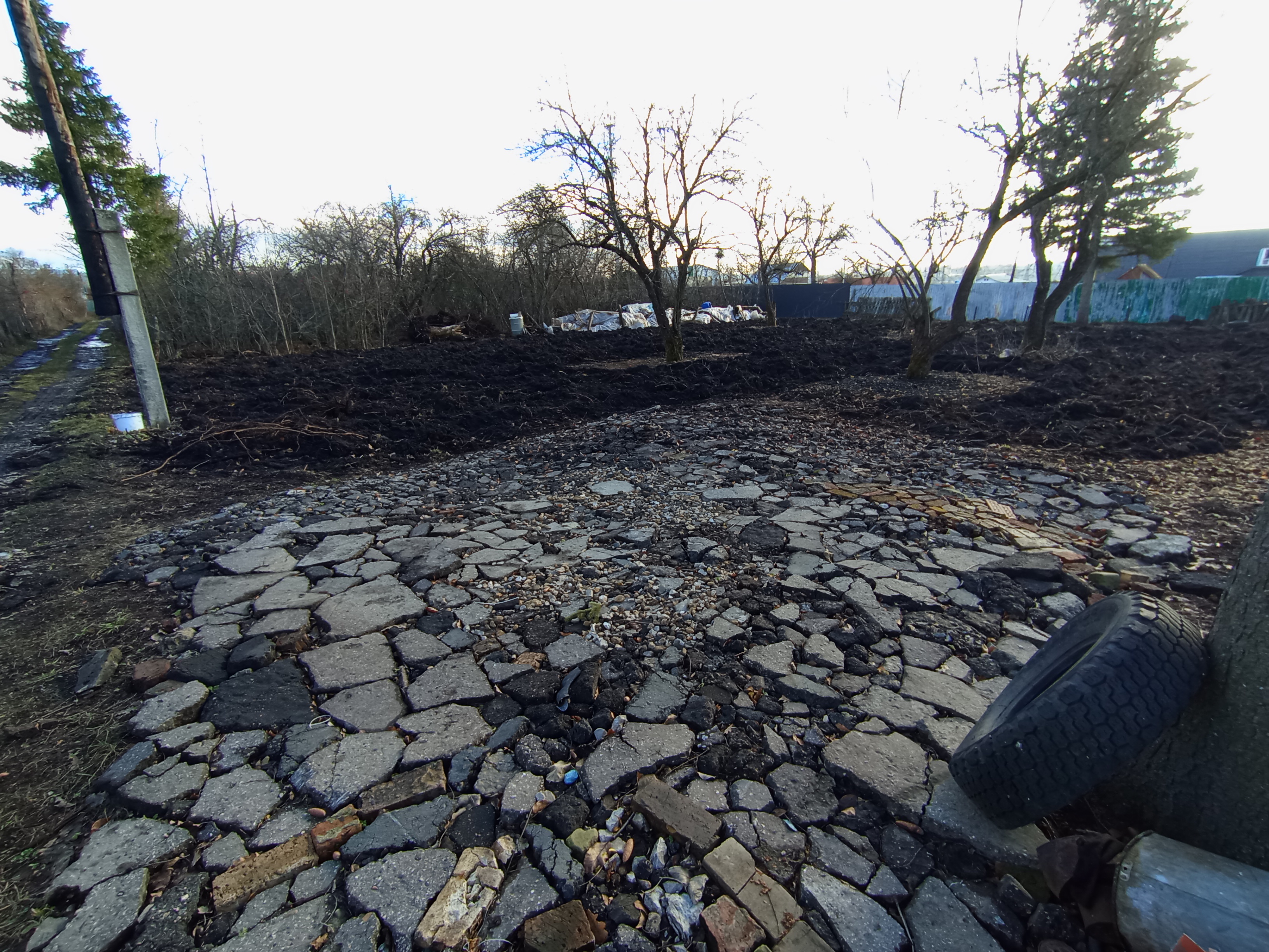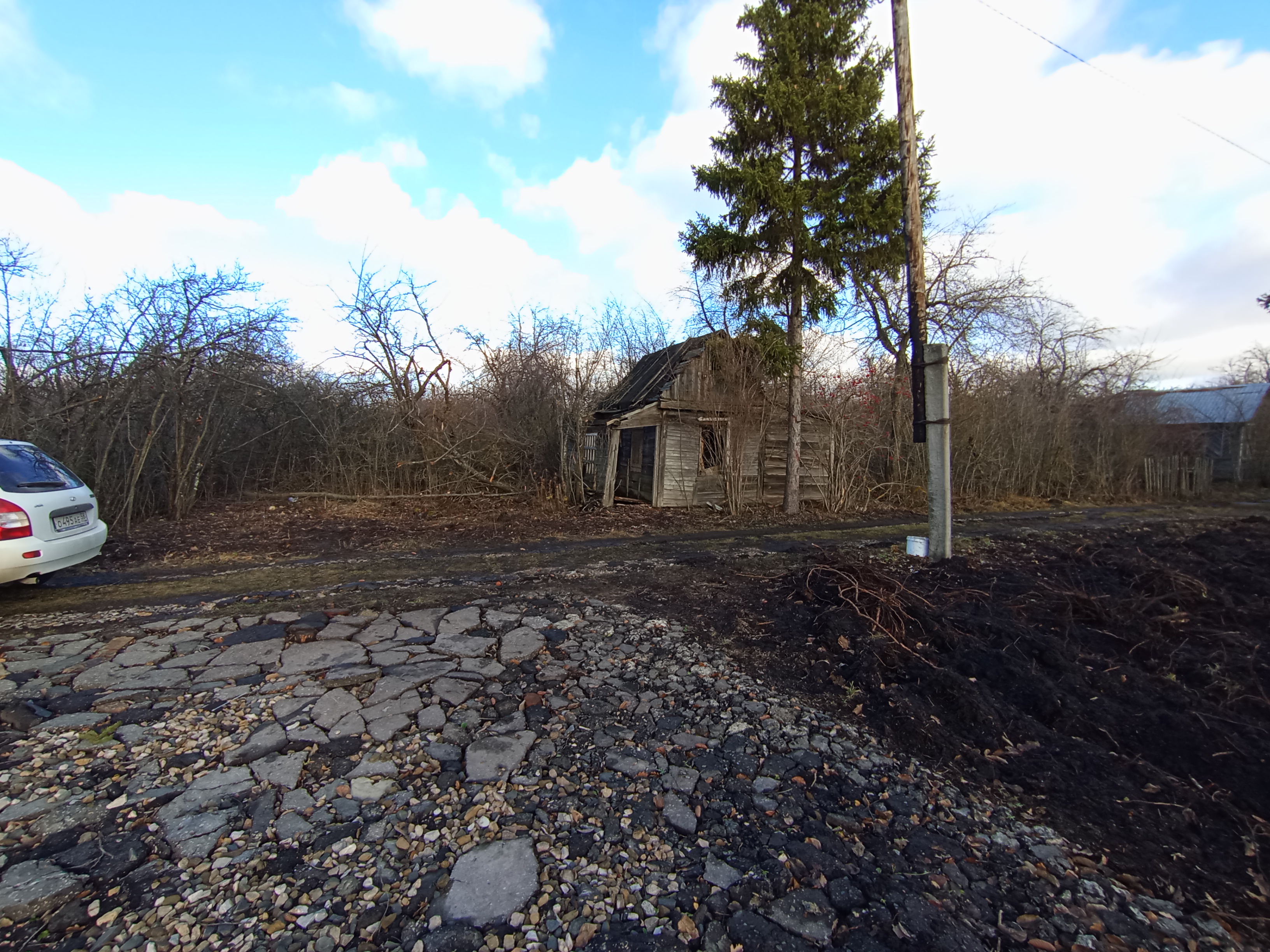 Домик был 15 кв.м. (разобрали под сарай). Дачный участок не использовался лет 10, в этом году выкорчевали корни и вспахали. Отсыпано парковочое место, выкопана яма для туалета.