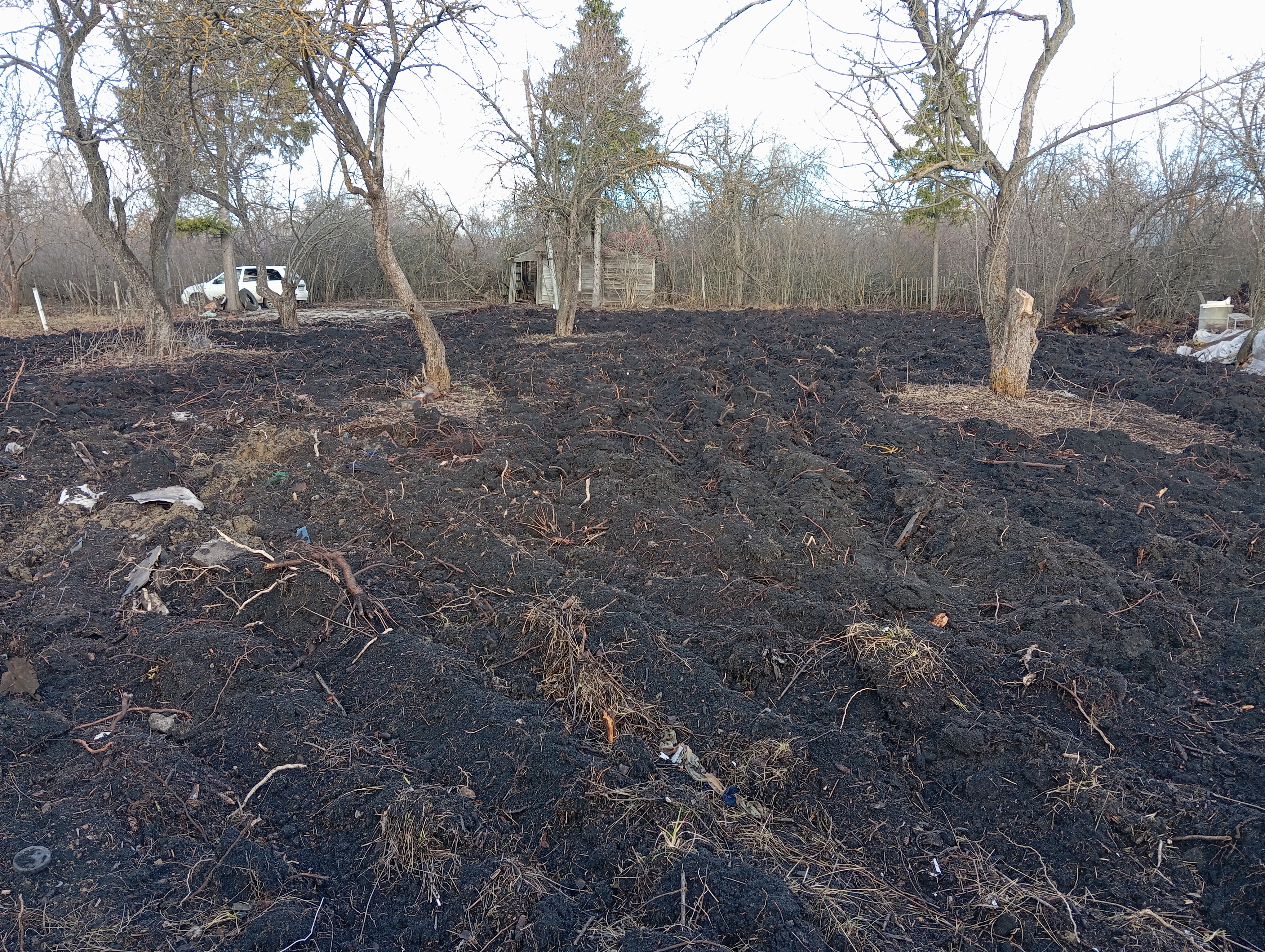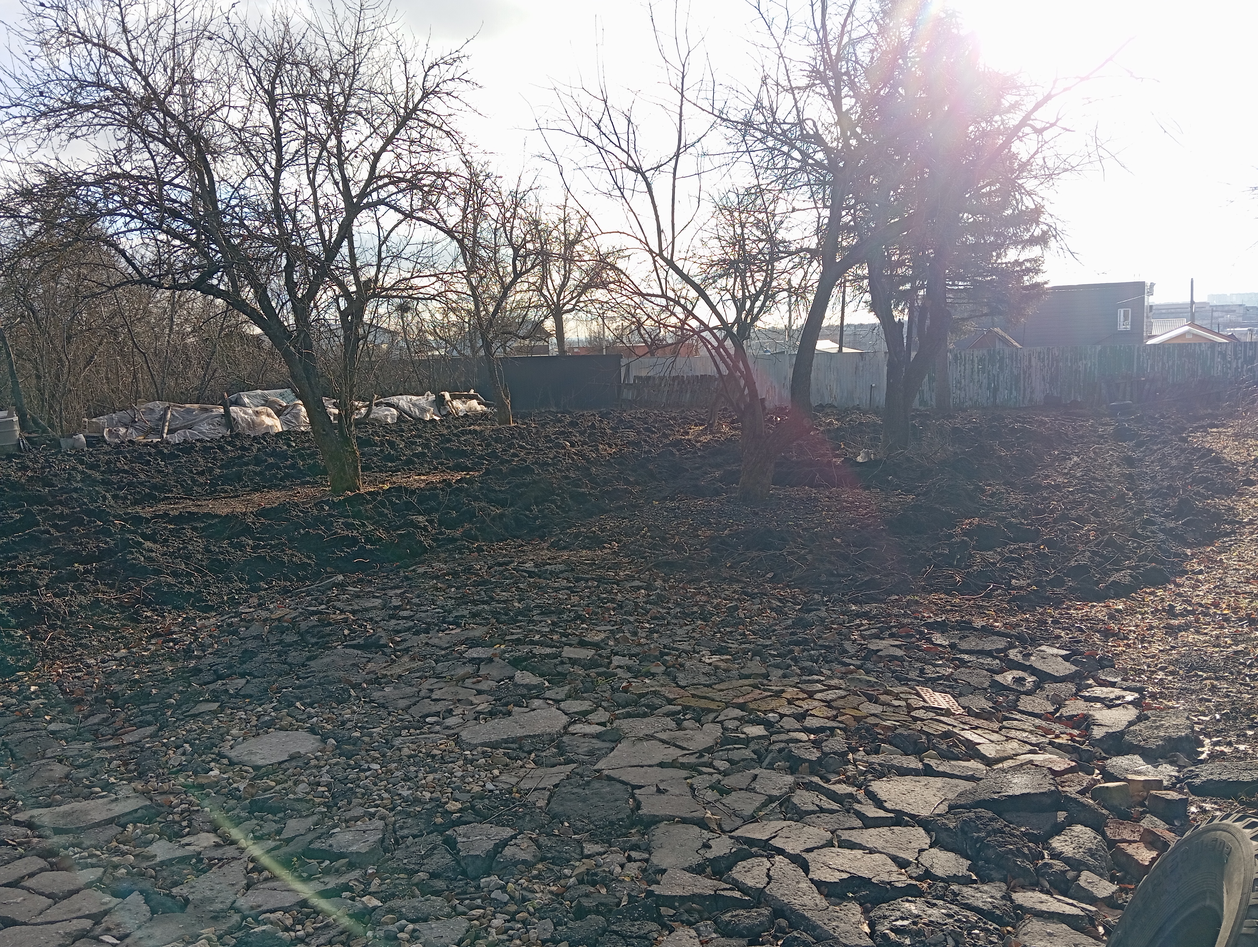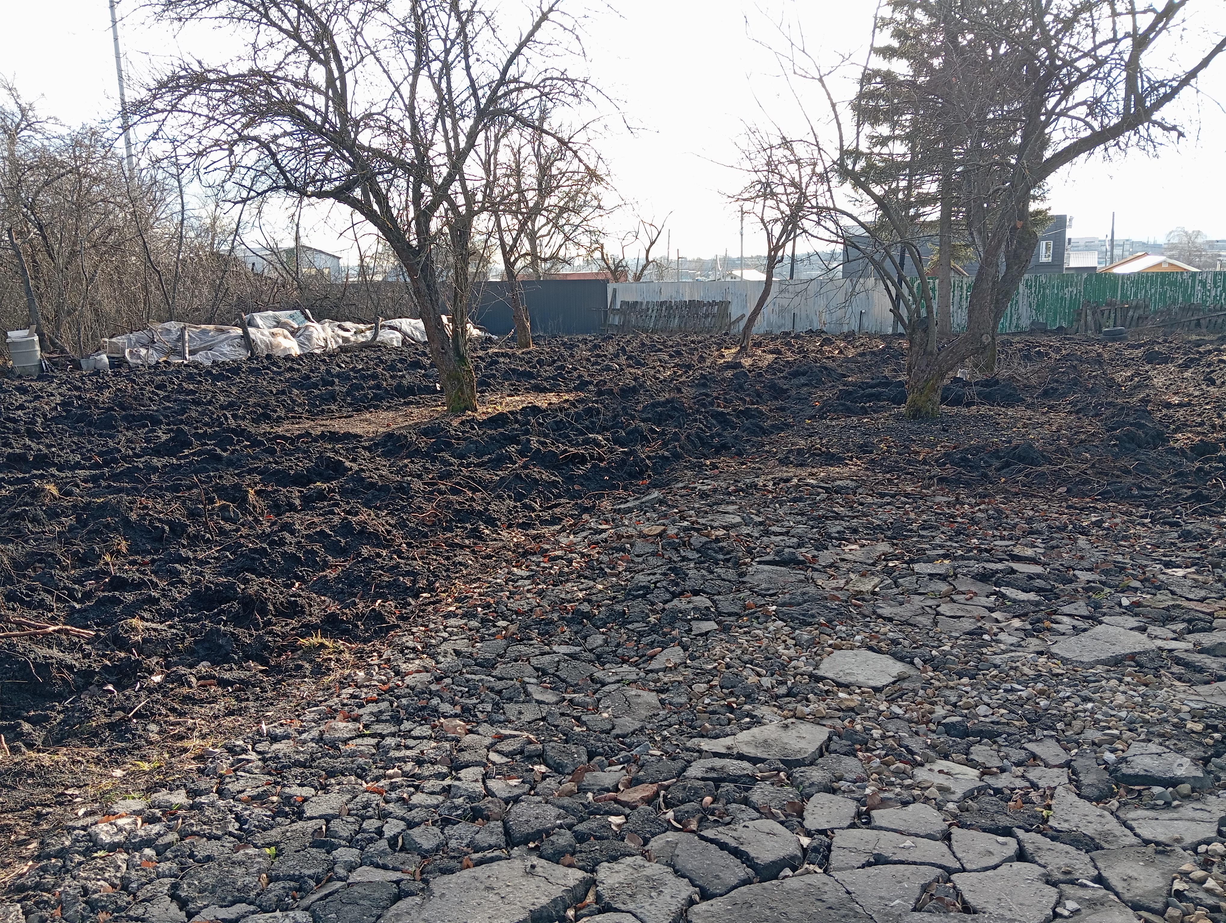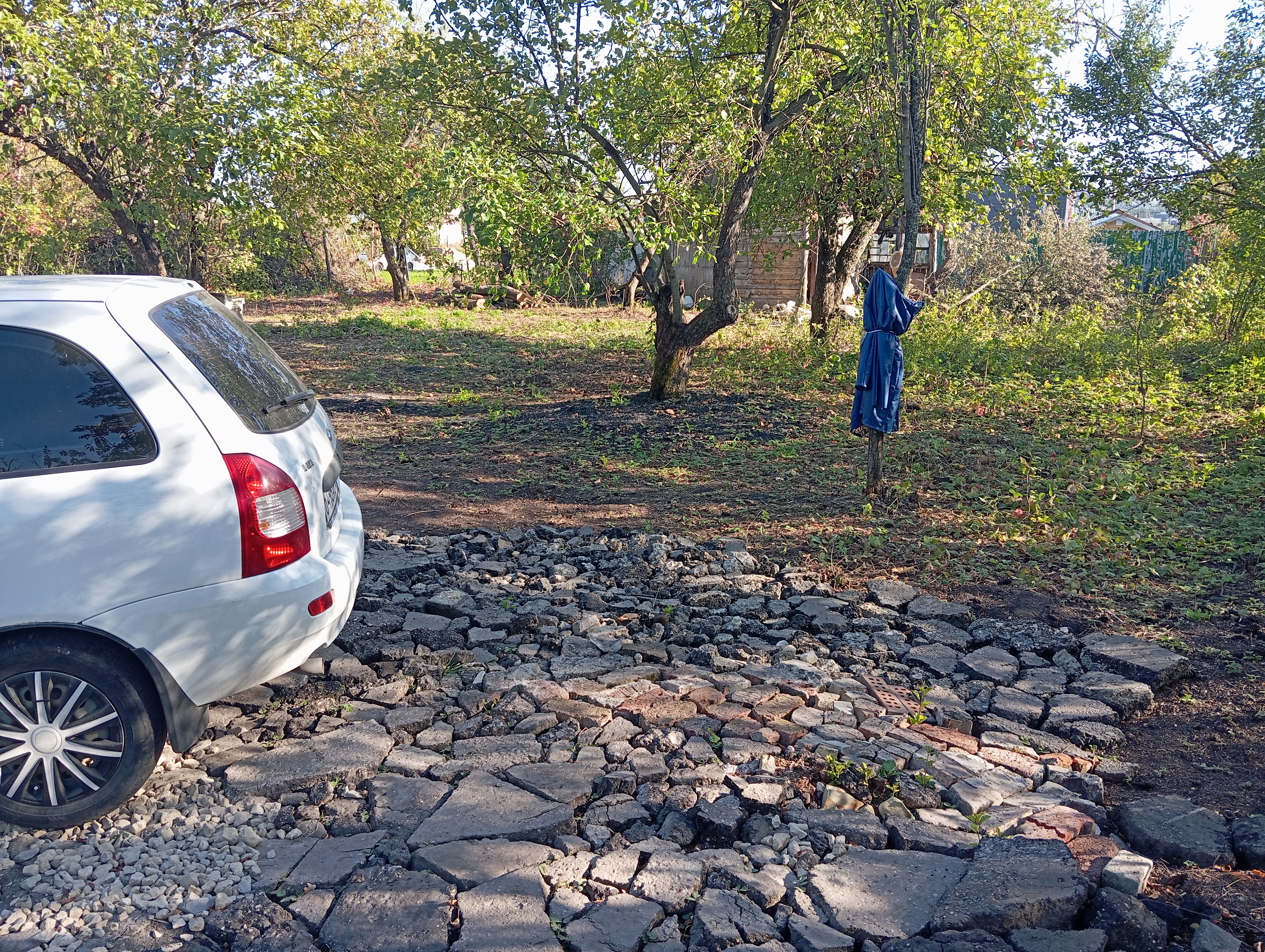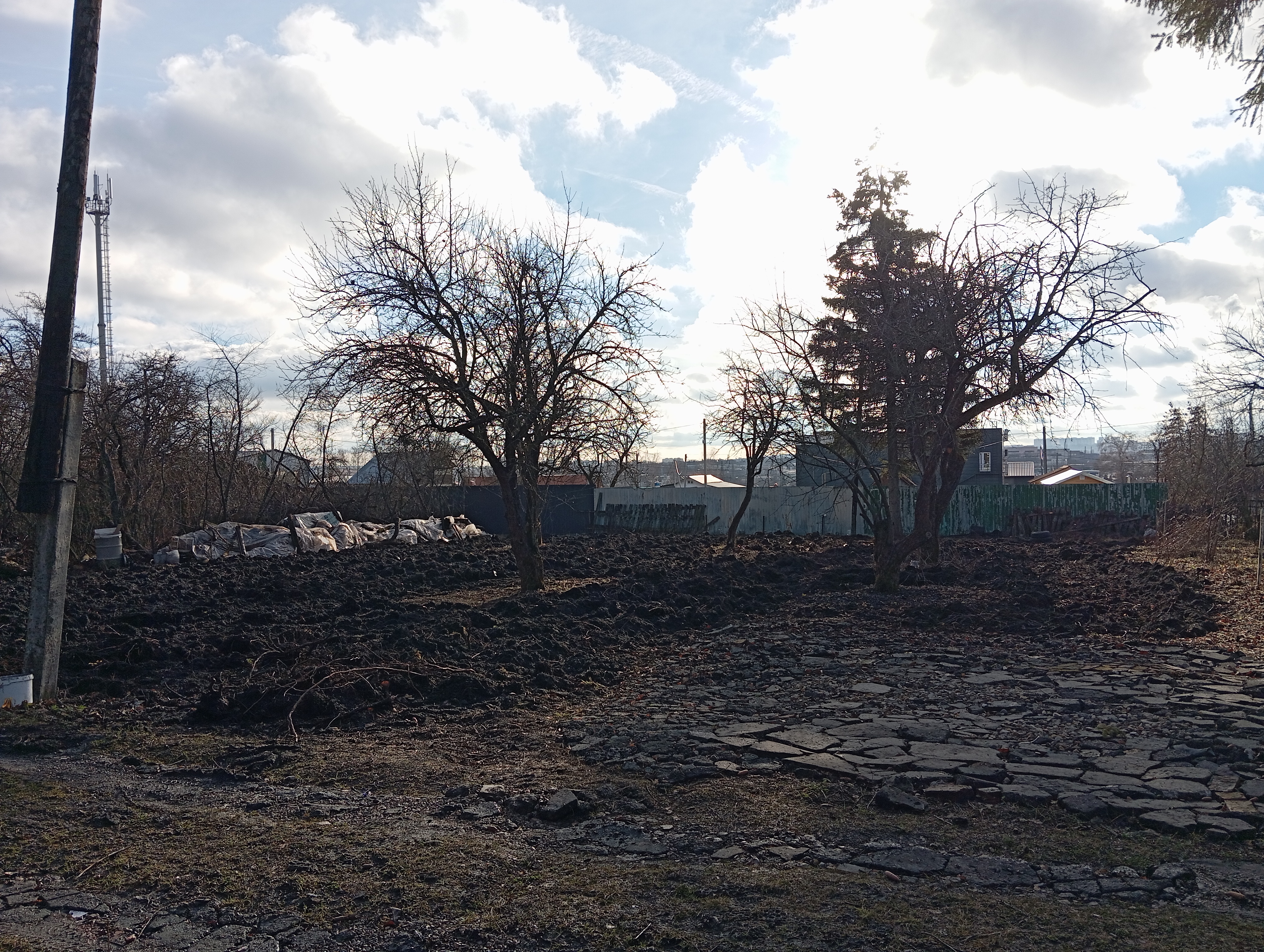 Домик был 15 кв.м. (разобрали под сарай). Дачный участок не использовался лет 10, в этом году выкорчевали корни и вспахали. Отсыпано парковочое место, выкопана яма для туалета.