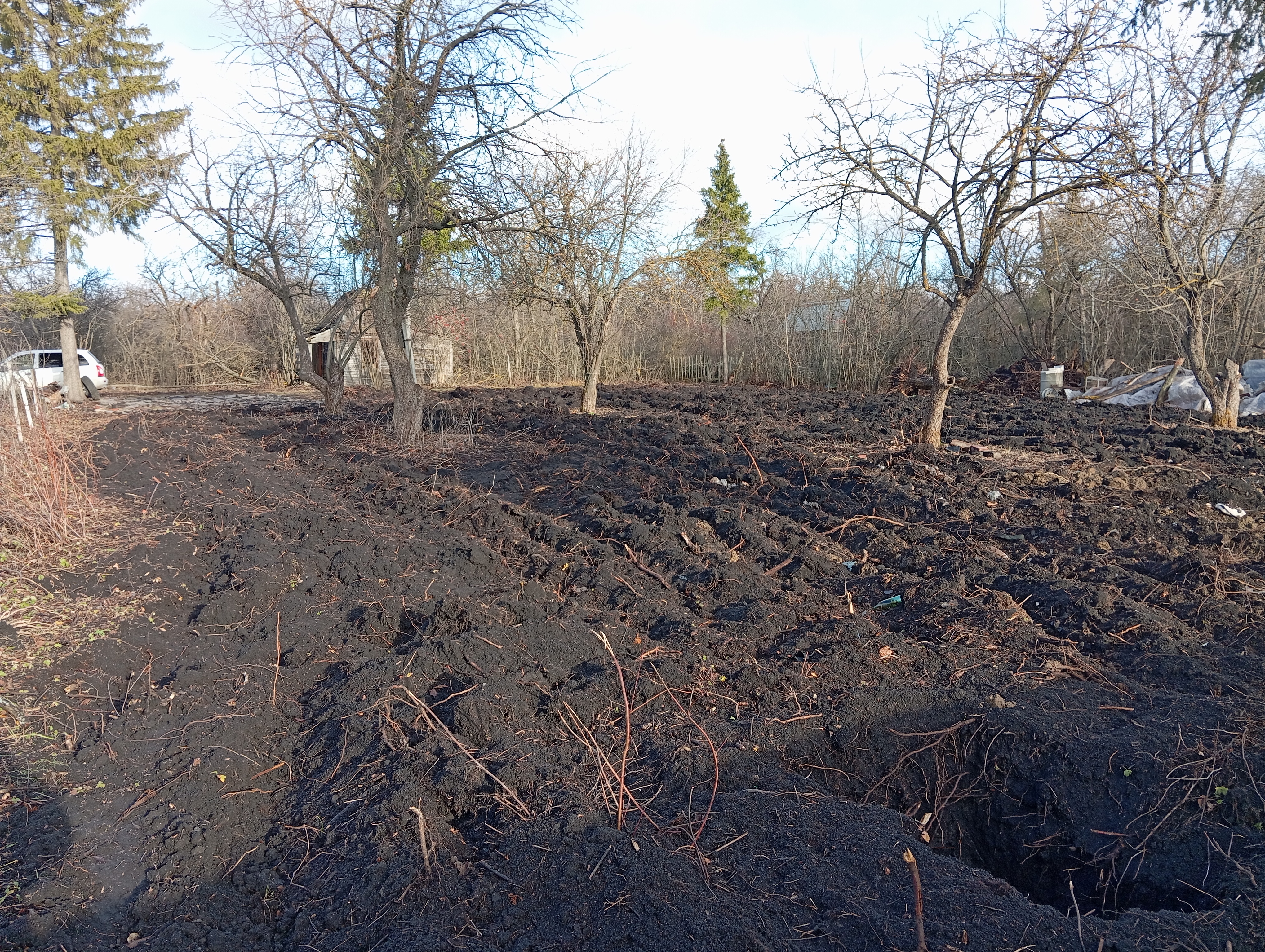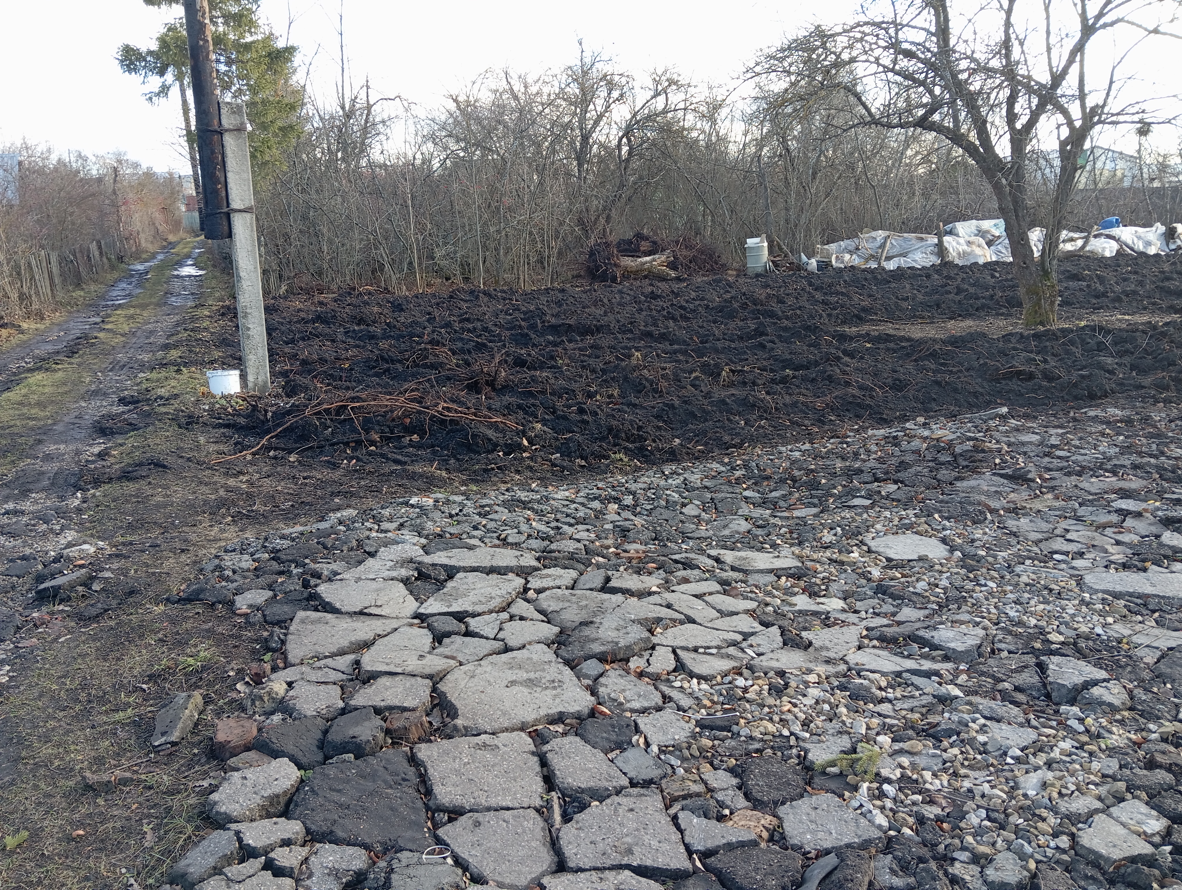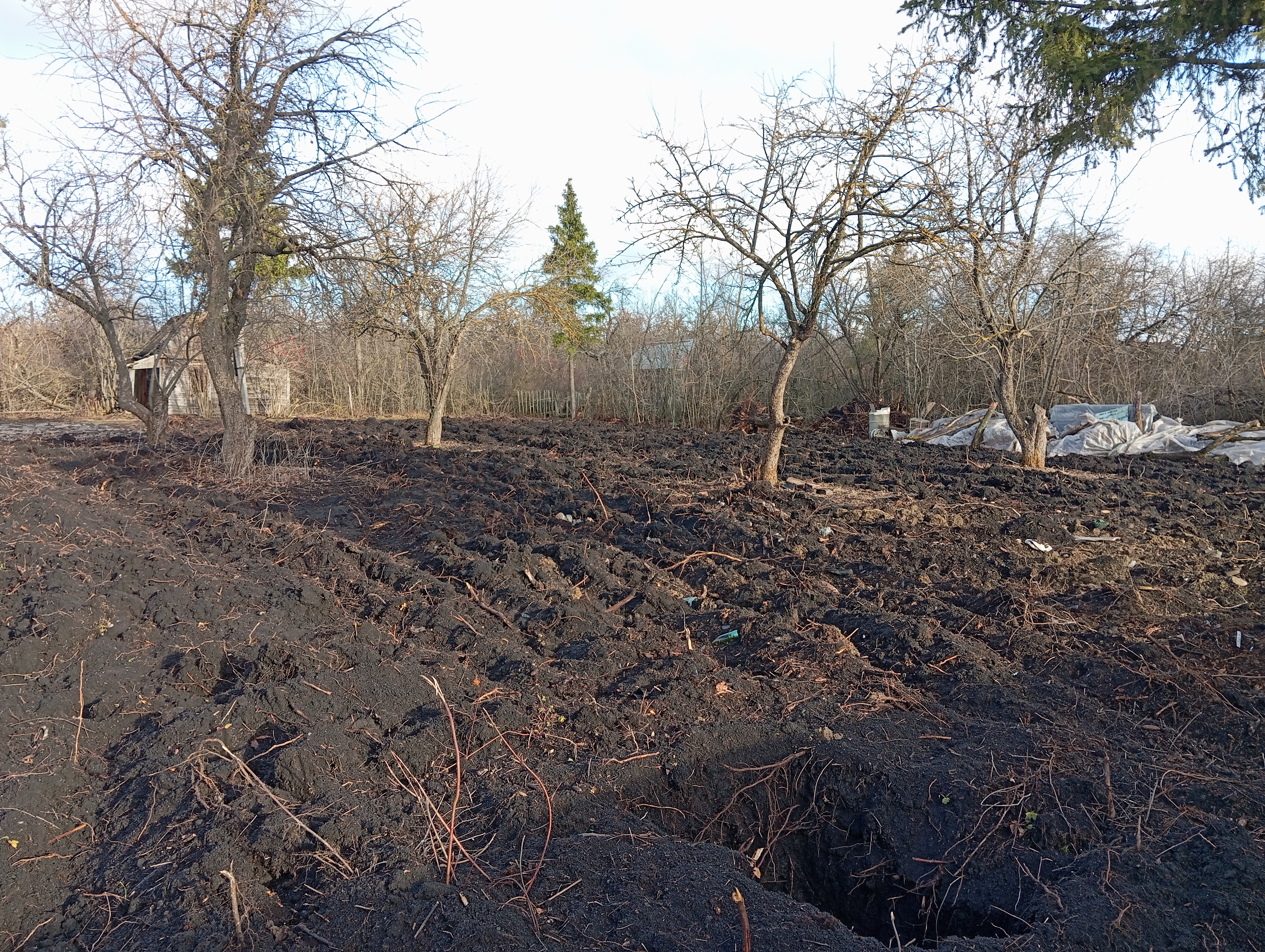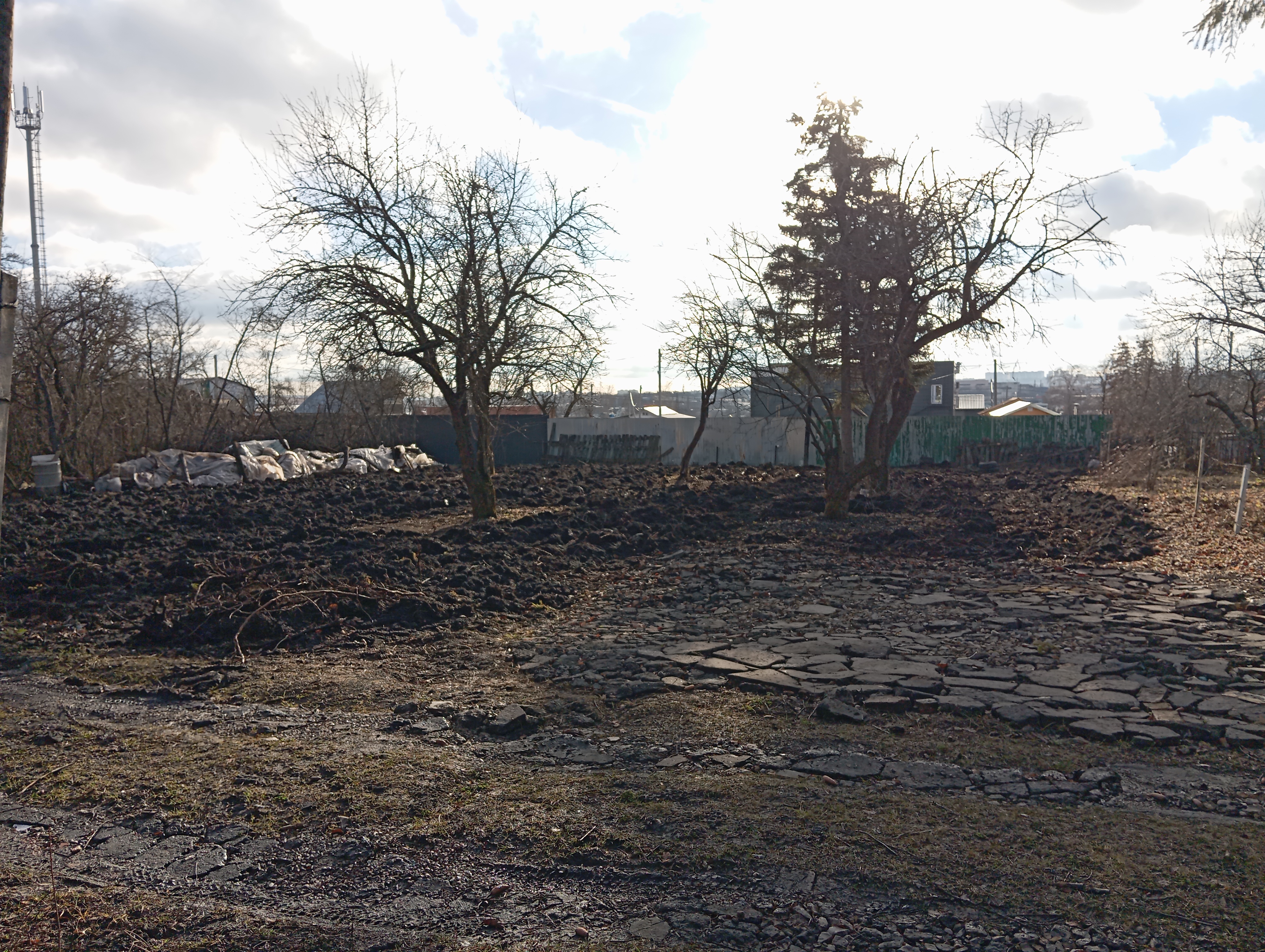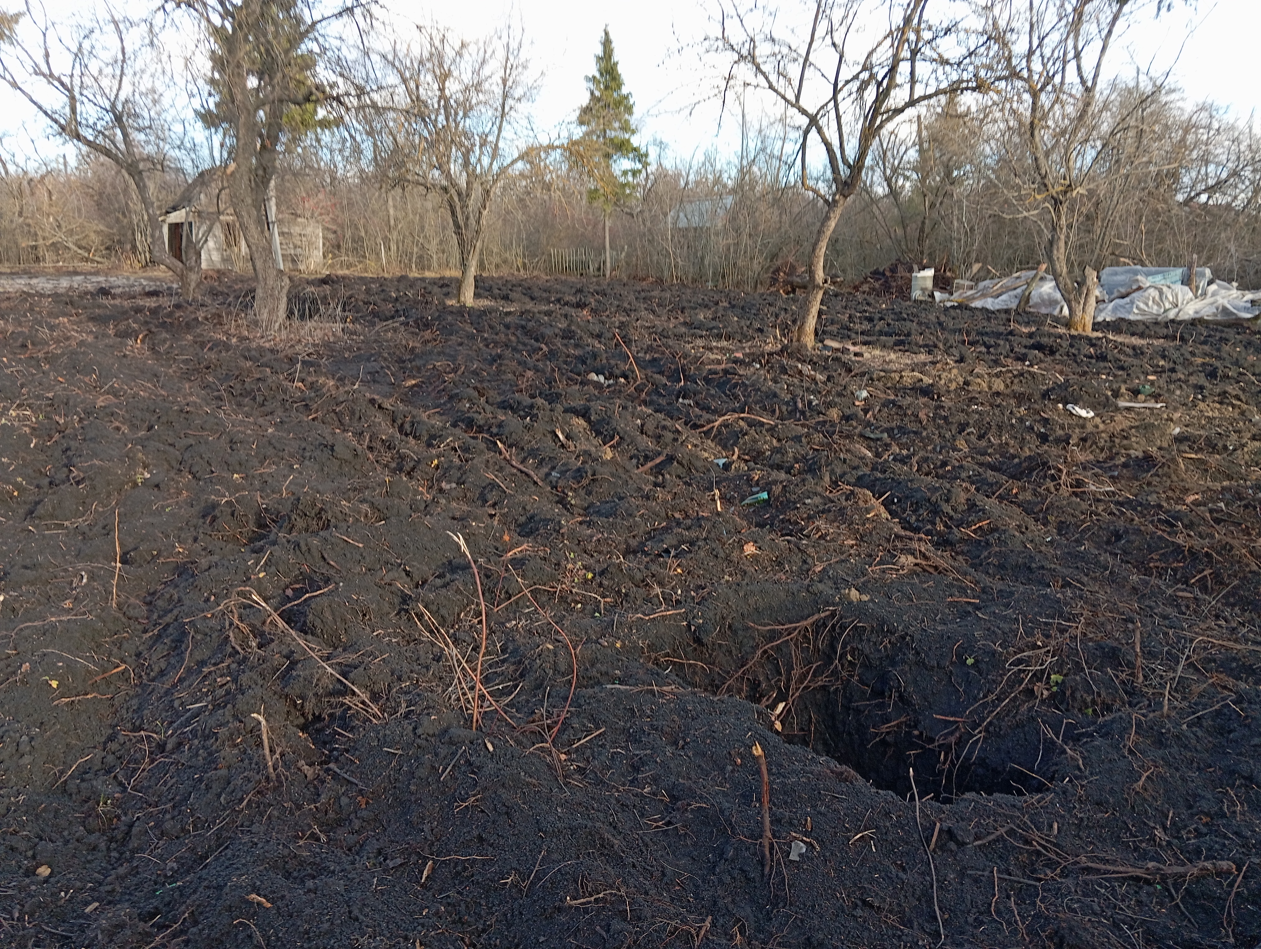 Домик был 15 кв.м. (разобрали под сарай). Дачный участок не использовался лет 10, в этом году выкорчевали корни и вспахали. Отсыпано парковочое место, выкопана яма для туалета.