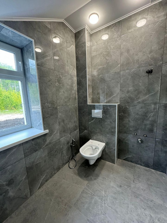 Отделка дома под ключ: входная металлическая дверь, межкомнатные двери, натяжные потолки с точеным освещением и светильниками, кафельная плитка нового образца, установка отопительного оборудования, теплый пол, пластиковые окна.