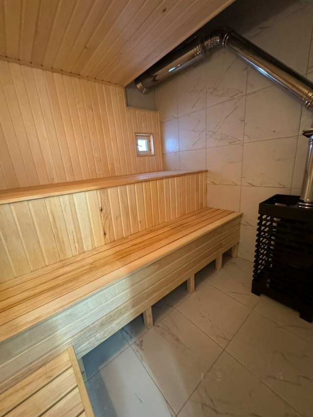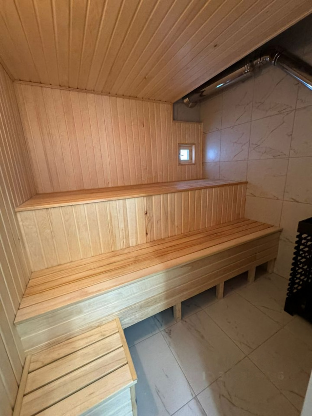 В доме расположена сауна на первом этаже, кухня, гостинная, спальни, кладовая комната, несколько с/у, панорамное остекление, высокие потолки, современная и качественная отделка отделка.