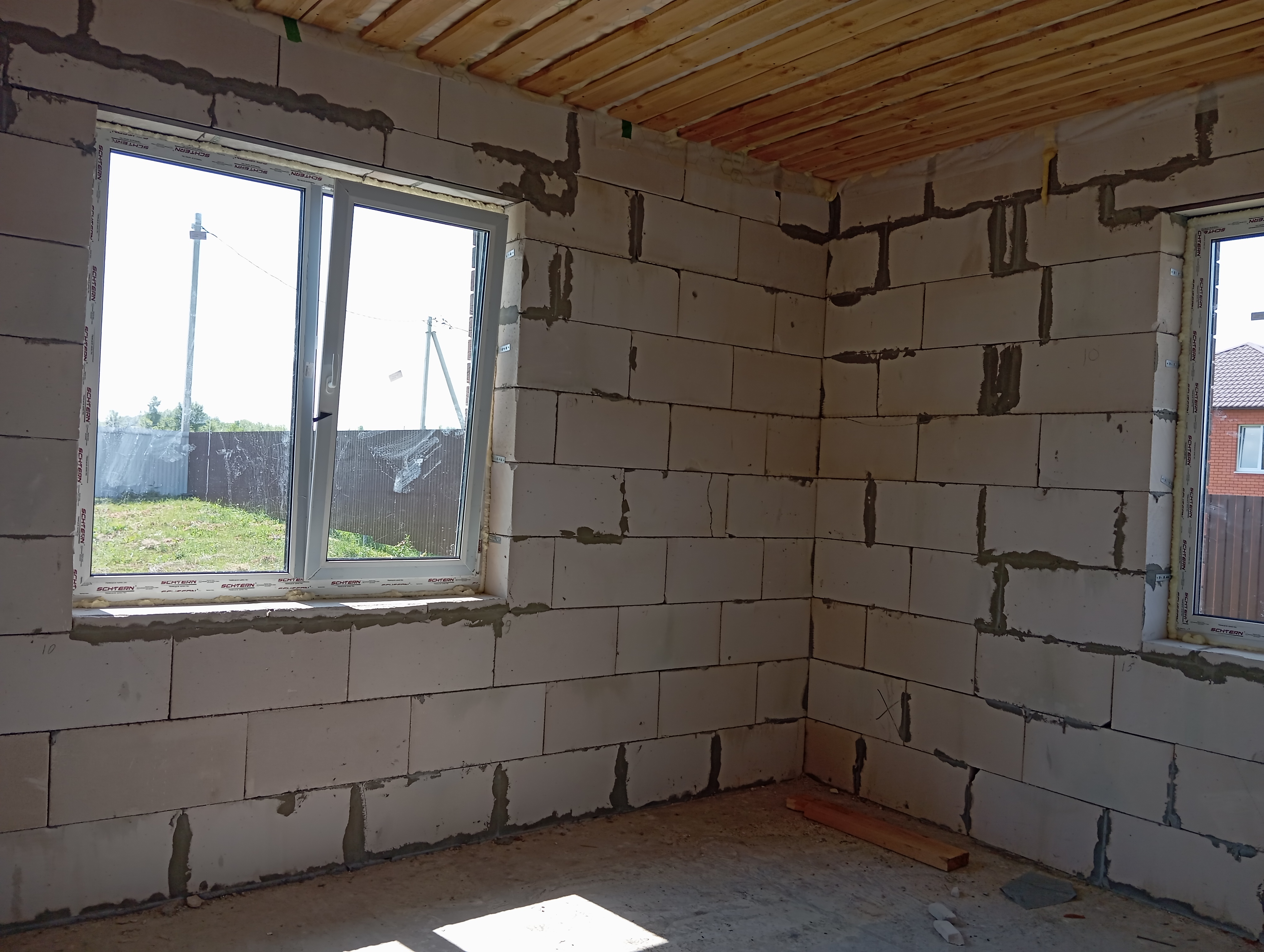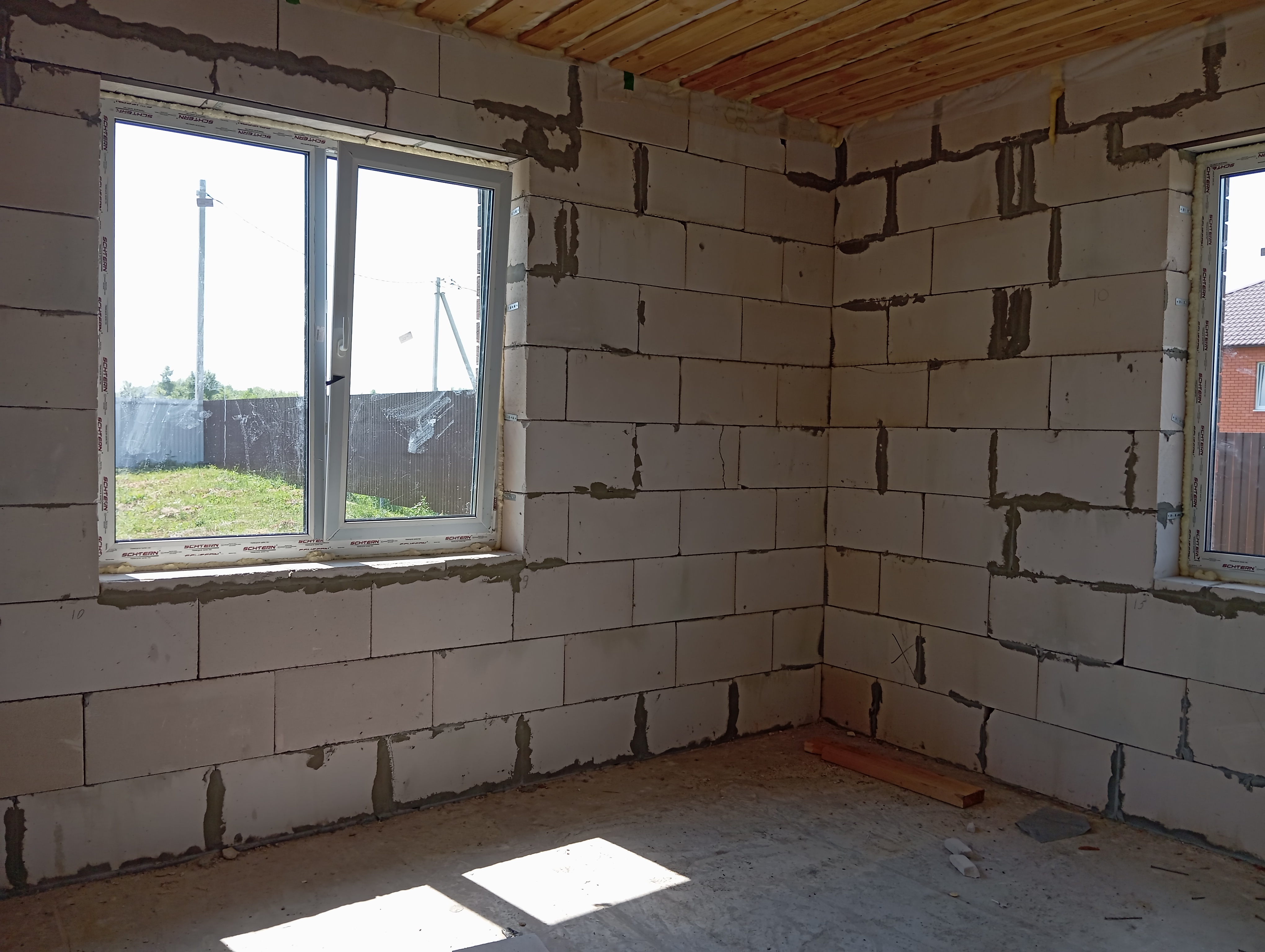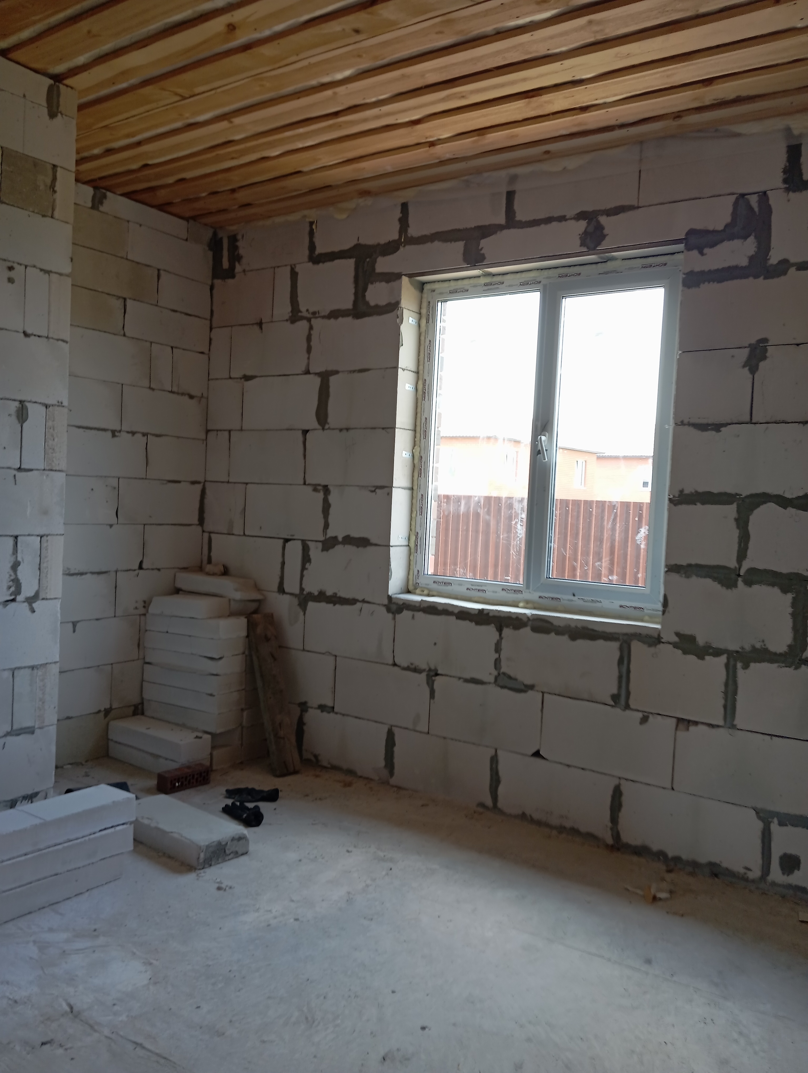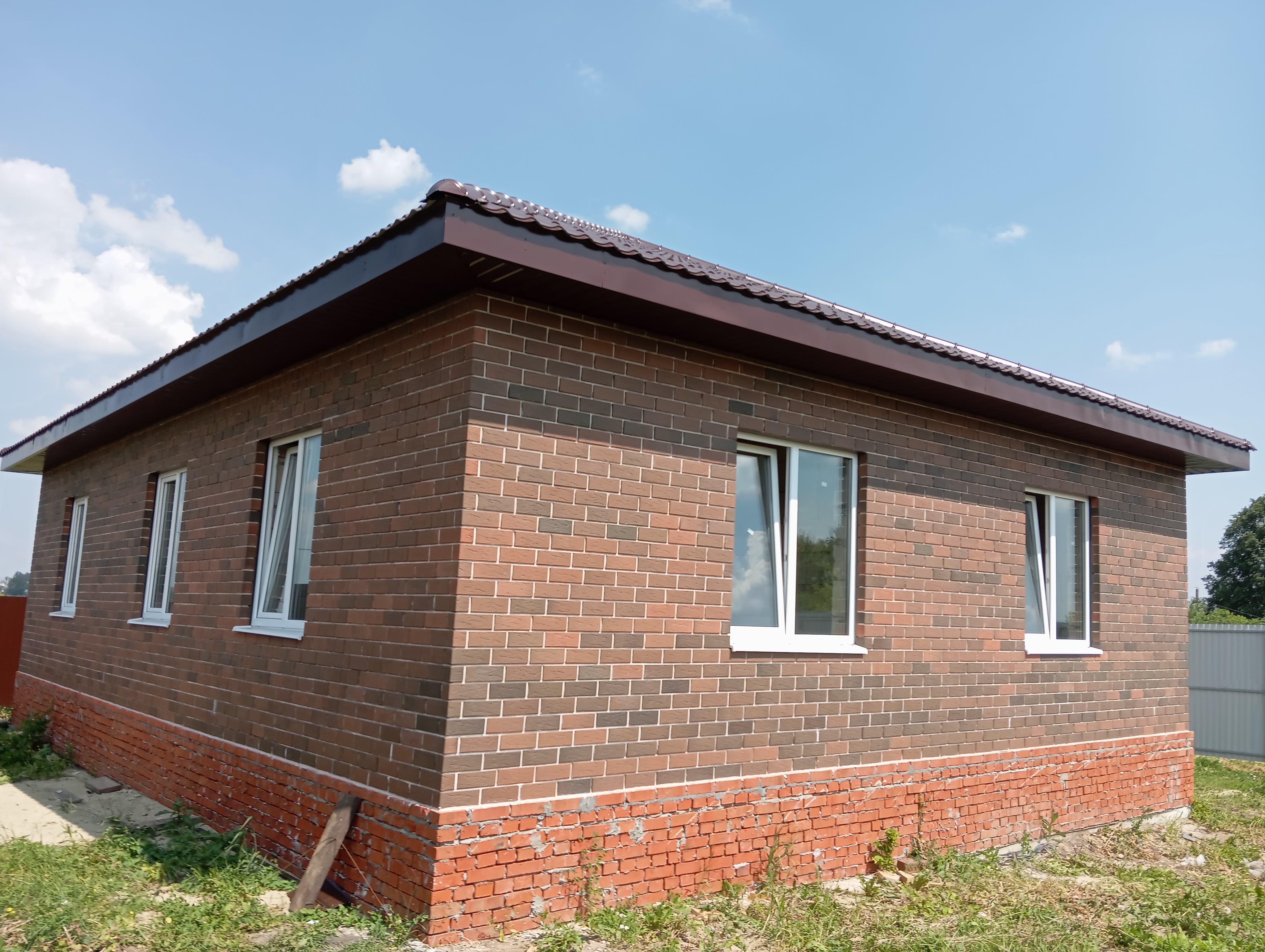 Черновая отделка: буронабивной фундамент с монолитным ростверком, материал стен пеноблок 250х300, фасад облицовочный кирпич. Полы засыпаны песком и залиты бетонной смесью. Установлены пластиковые окна 70 профиль, с двойным стеклопакетом и отражающей пленкой. Крыша перекрыта металлочерепицей, дышащий материал, утеплена, входная металлическая дверь с теромразрывом. По всему периметру установлен забор, с воротами и входной дверью. Продается в таком варианте, кака на представлено на фото.