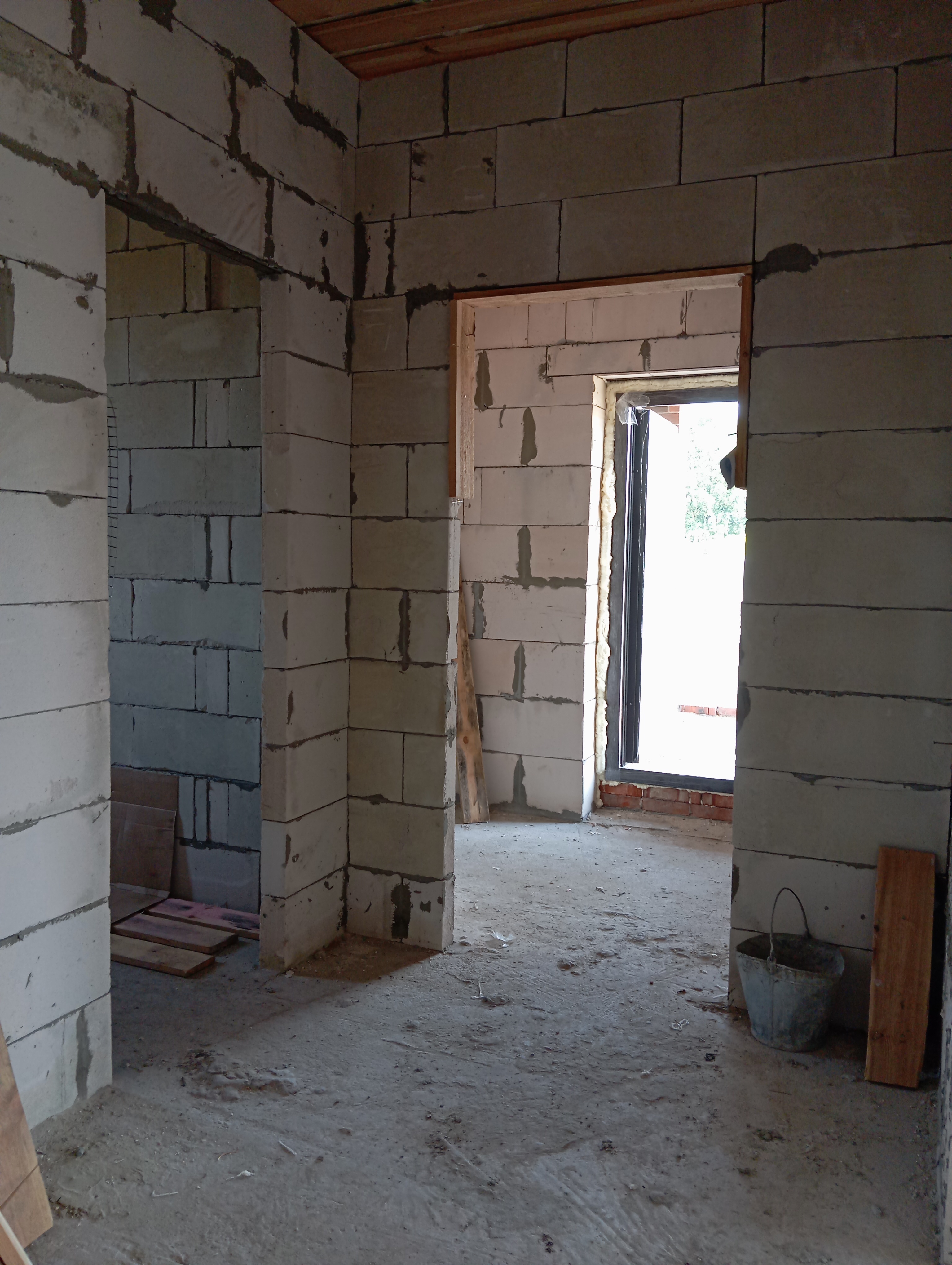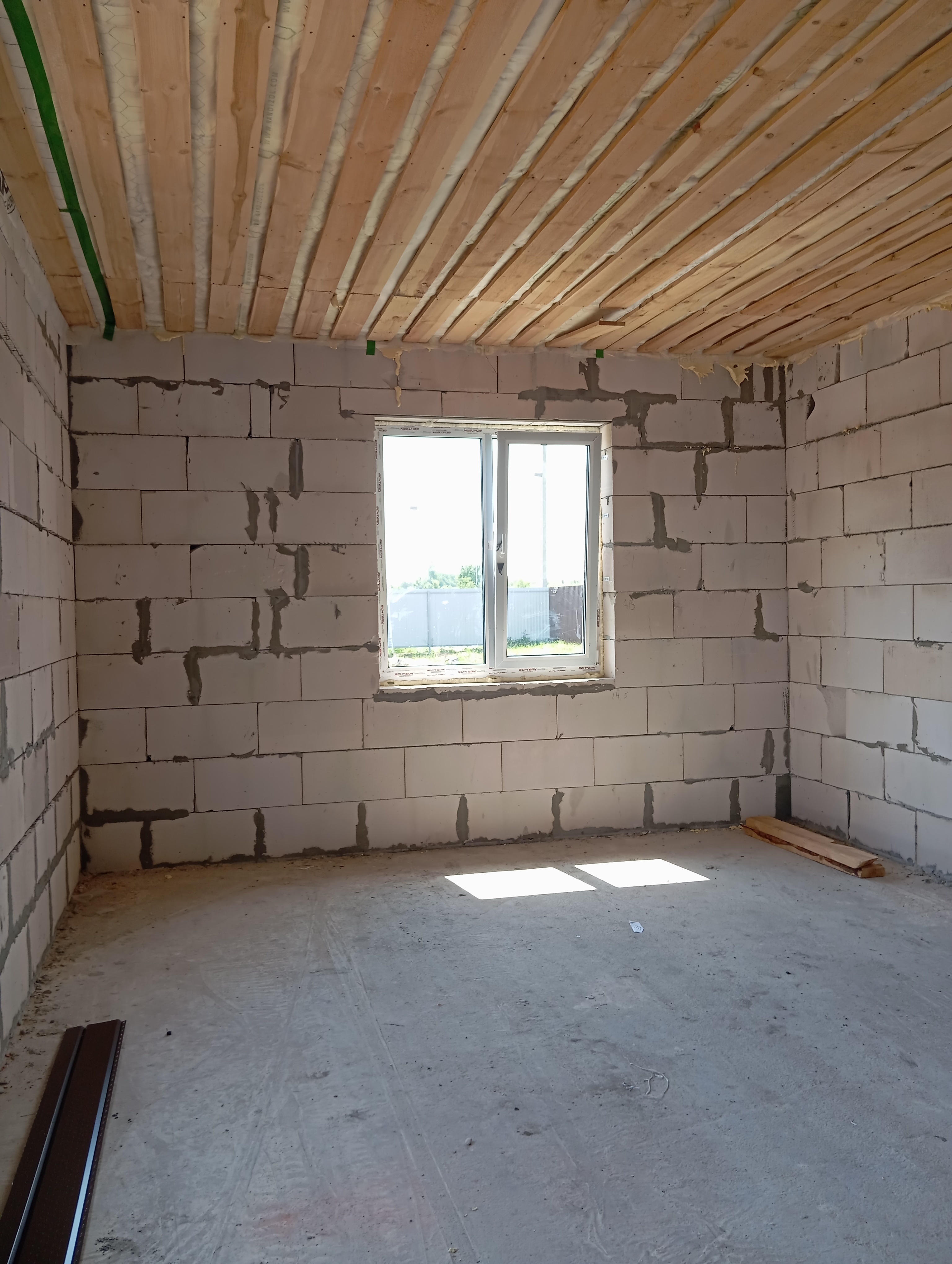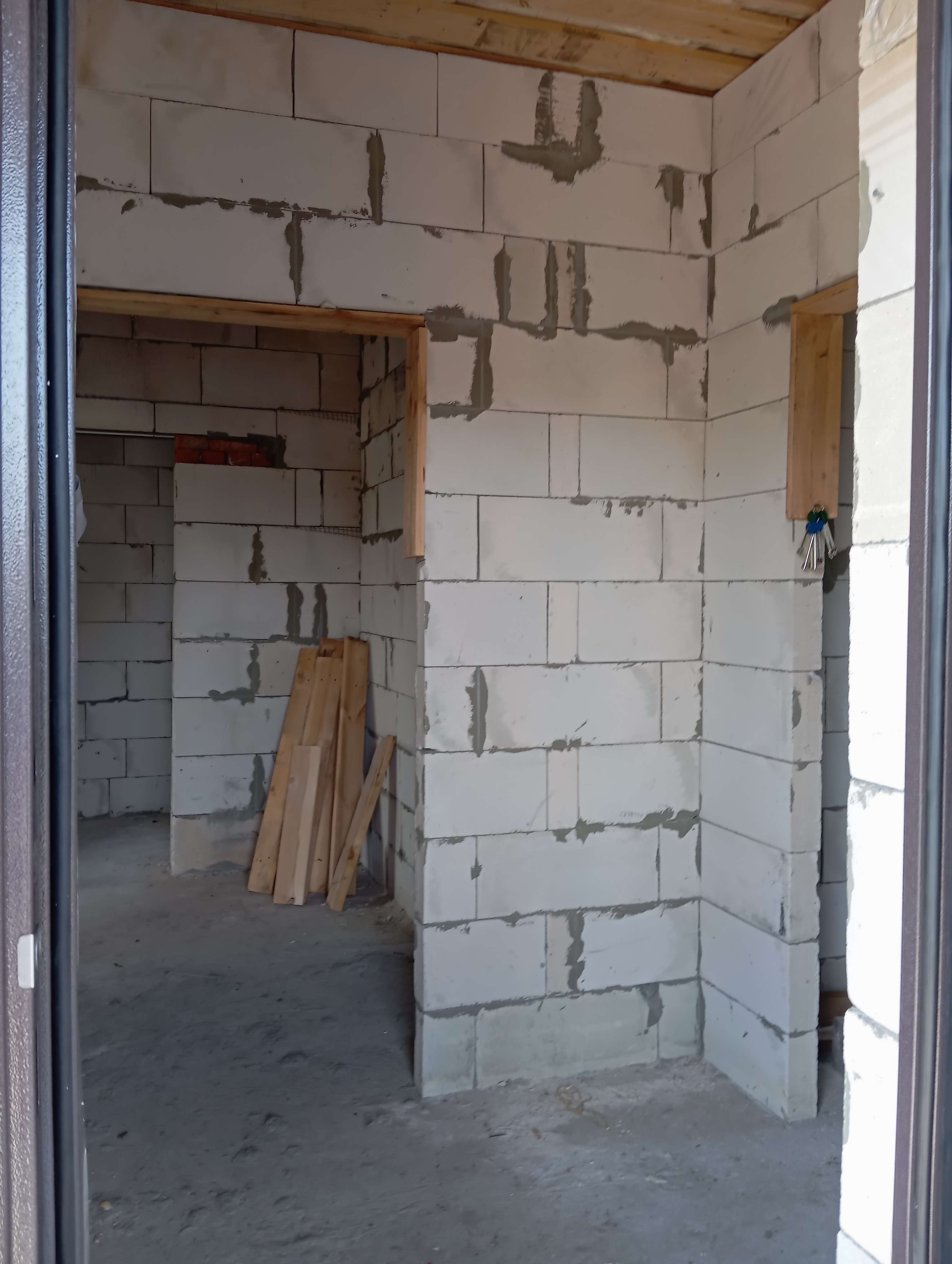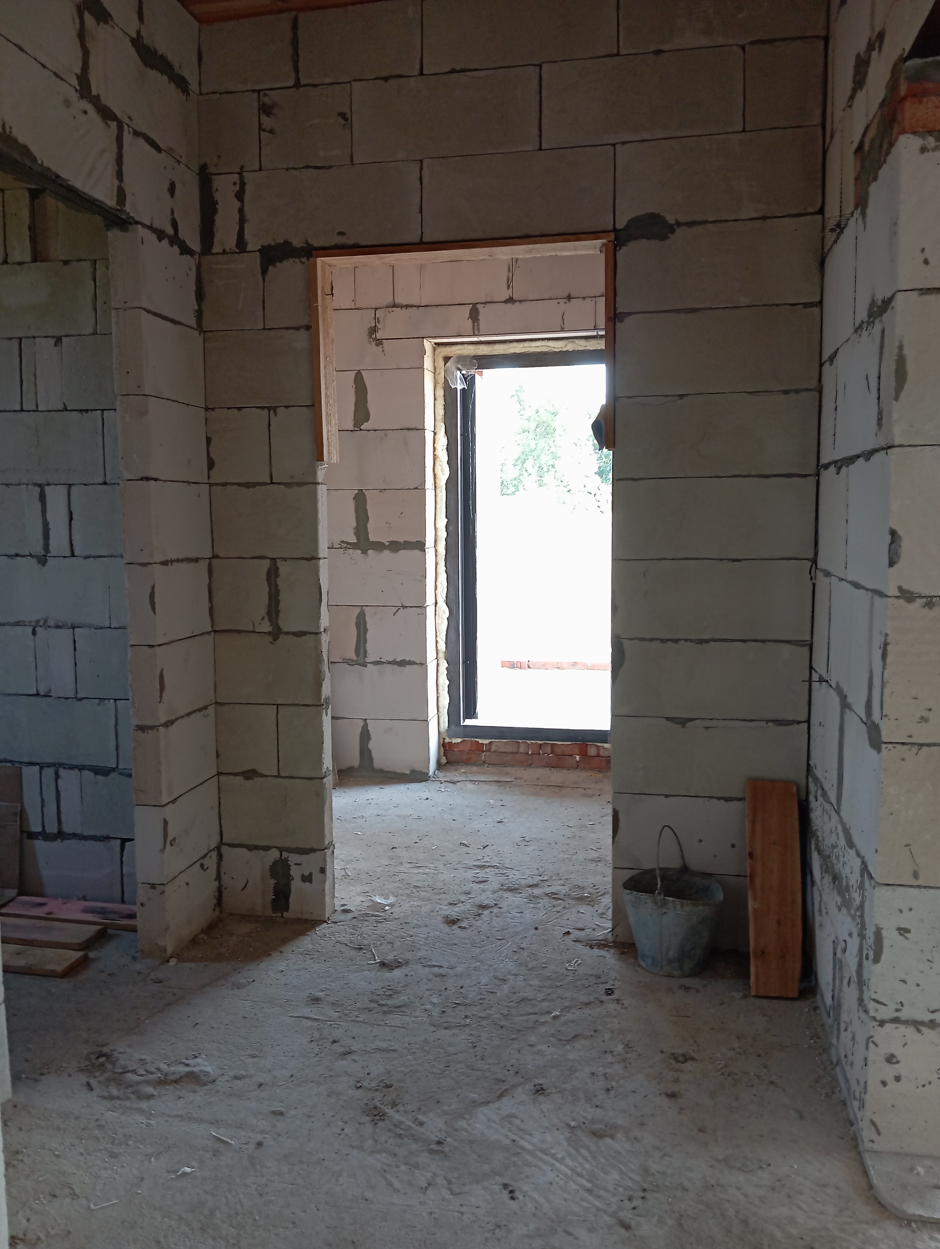 Черновая отделка: буронабивной фундамент с монолитным ростверком, материал стен пеноблок 250х300, фасад облицовочный кирпич. Полы засыпаны песком и залиты бетонной смесью. Установлены пластиковые окна 70 профиль, с двойным стеклопакетом и отражающей пленкой. Крыша перекрыта металлочерепицей, дышащий материал, утеплена, входная металлическая дверь с теромразрывом. По всему периметру установлен забор, с воротами и входной дверью. Продается в таком варианте, кака на представлено на фото.