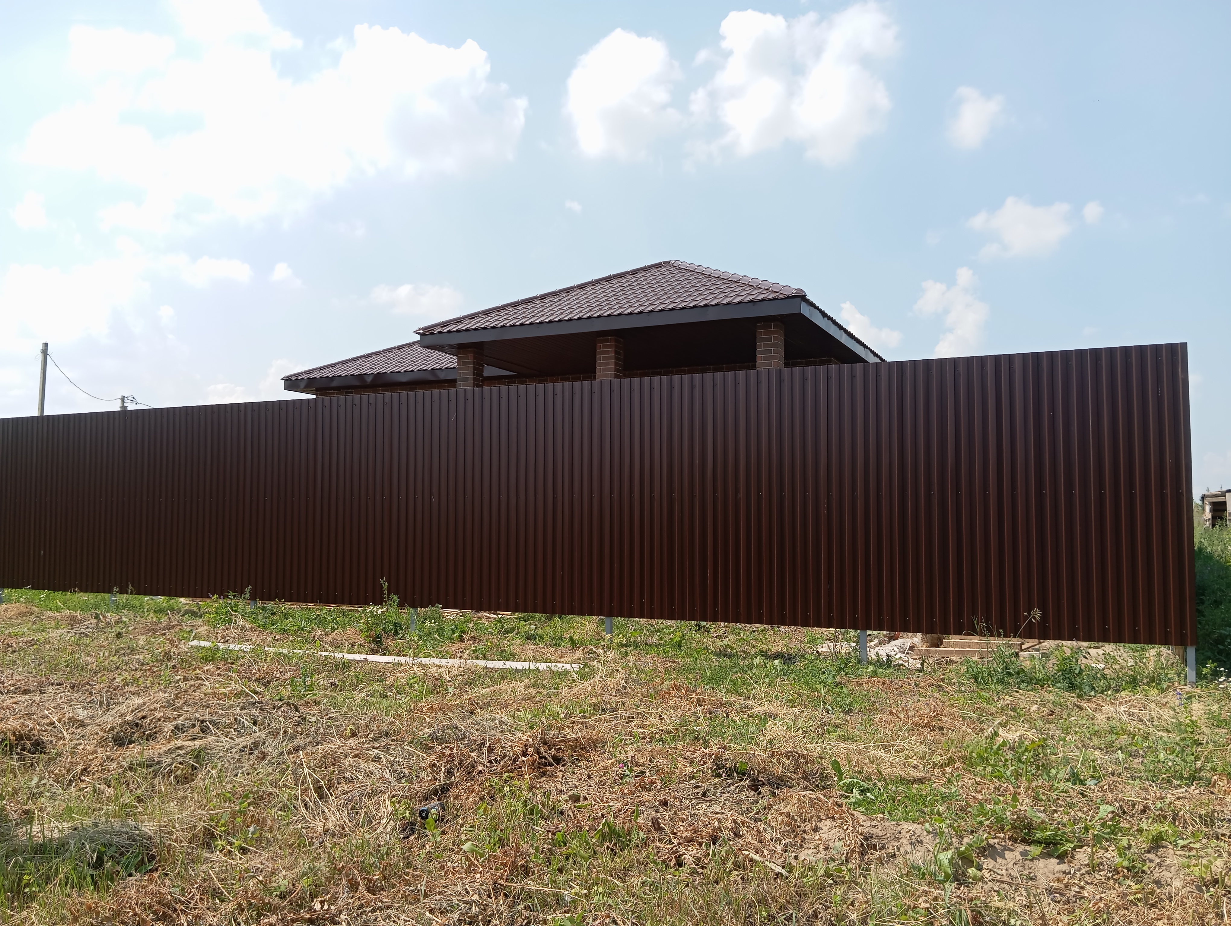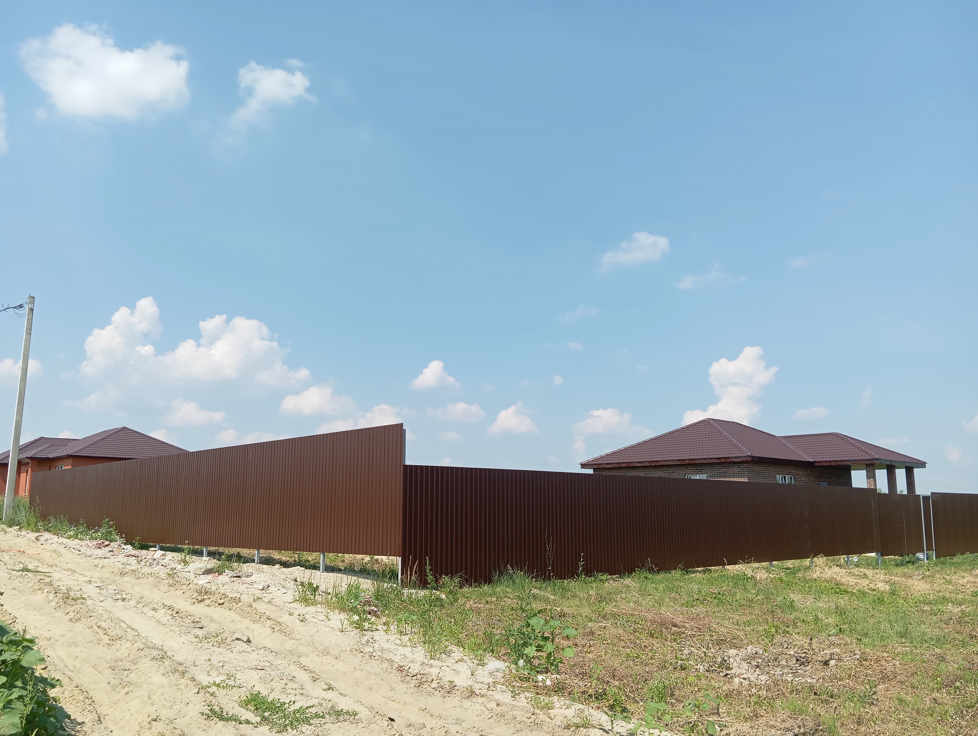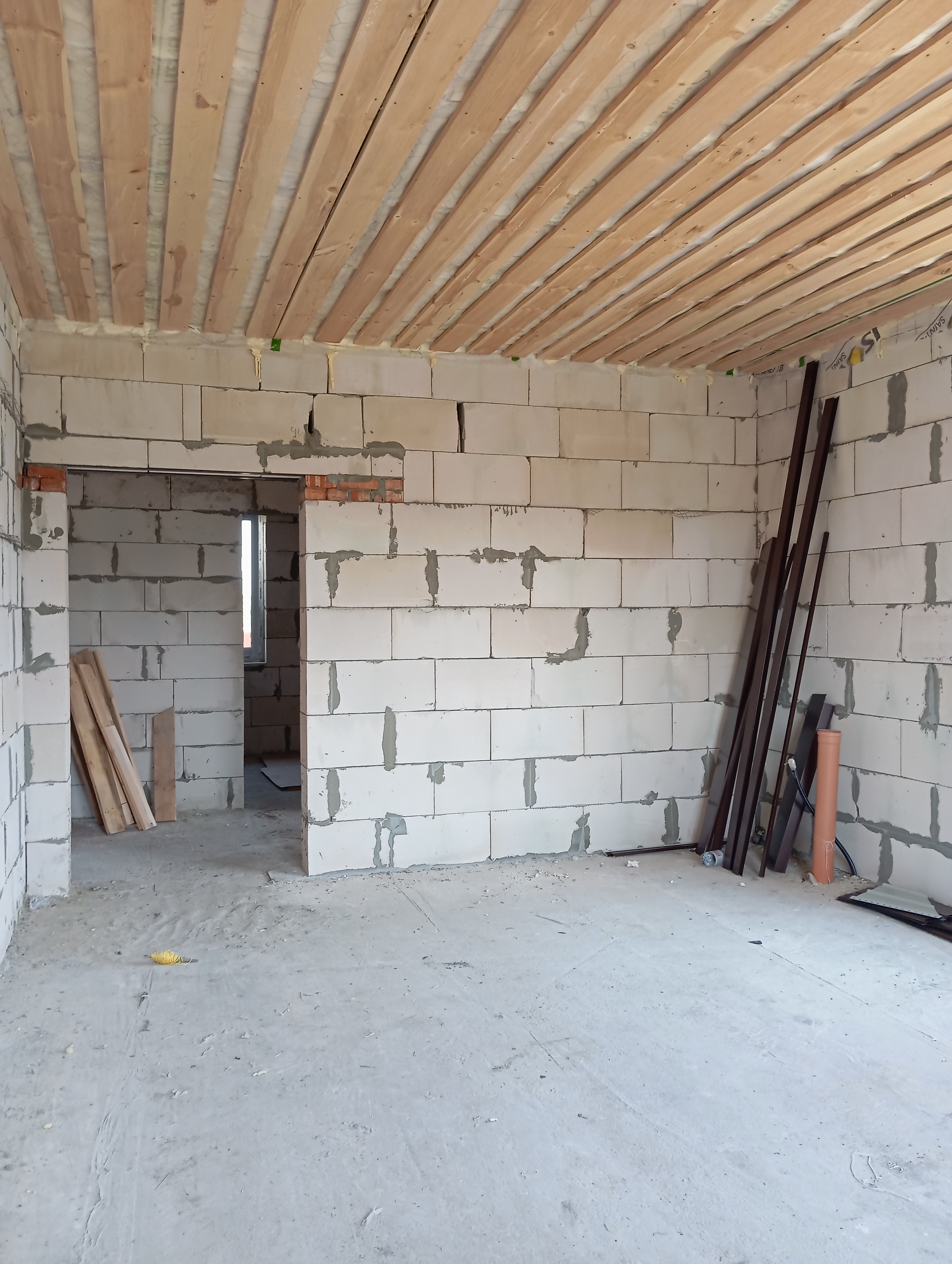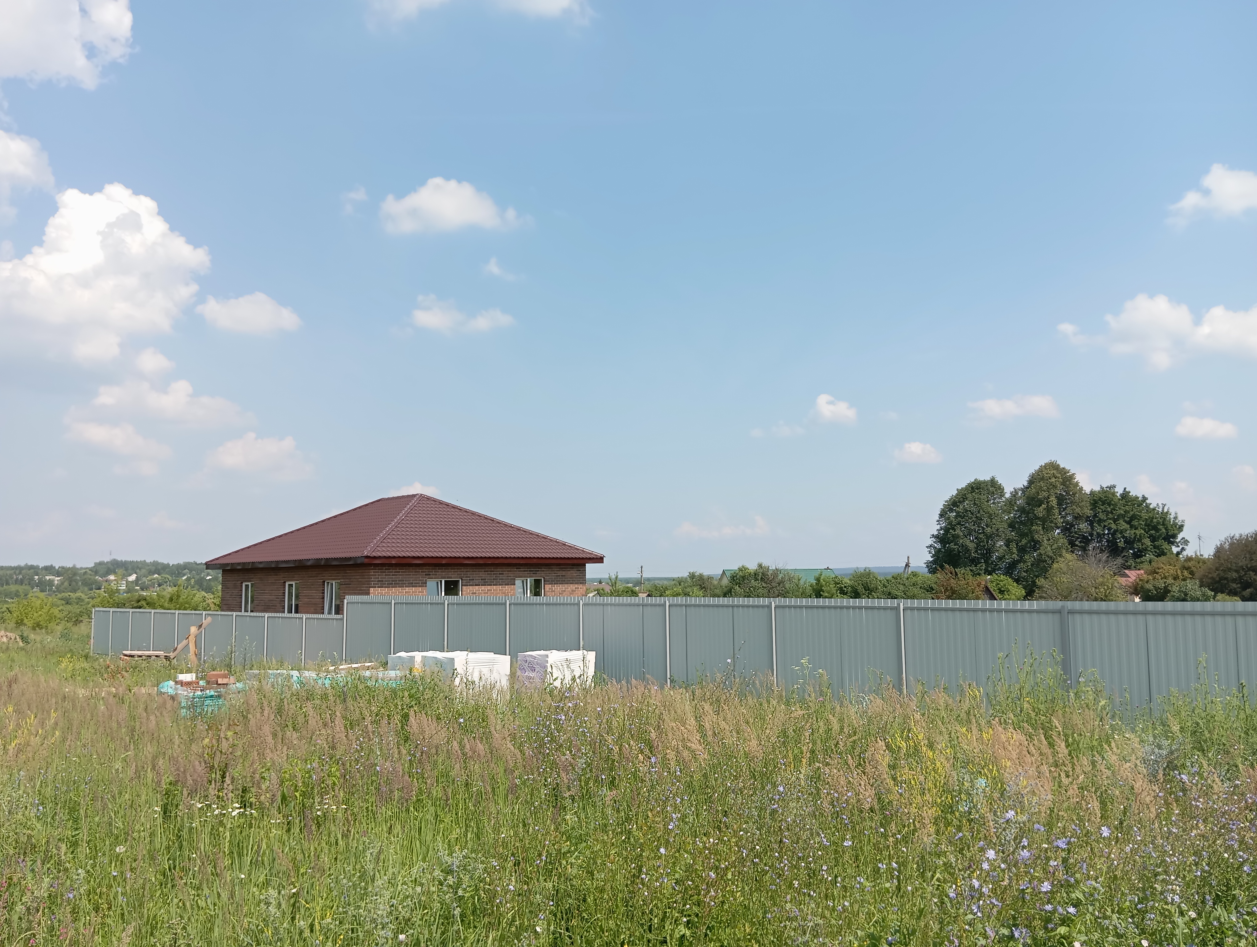 Черновая отделка: буронабивной фундамент с монолитным ростверком, материал стен пеноблок 250х300, фасад облицовочный кирпич. Полы засыпаны песком и залиты бетонной смесью. Установлены пластиковые окна 70 профиль, с двойным стеклопакетом и отражающей пленкой. Крыша перекрыта металлочерепицей, дышащий материал, утеплена, входная металлическая дверь с теромразрывом. По всему периметру установлен забор, с воротами и входной дверью. Продается в таком варианте, кака на представлено на фото.