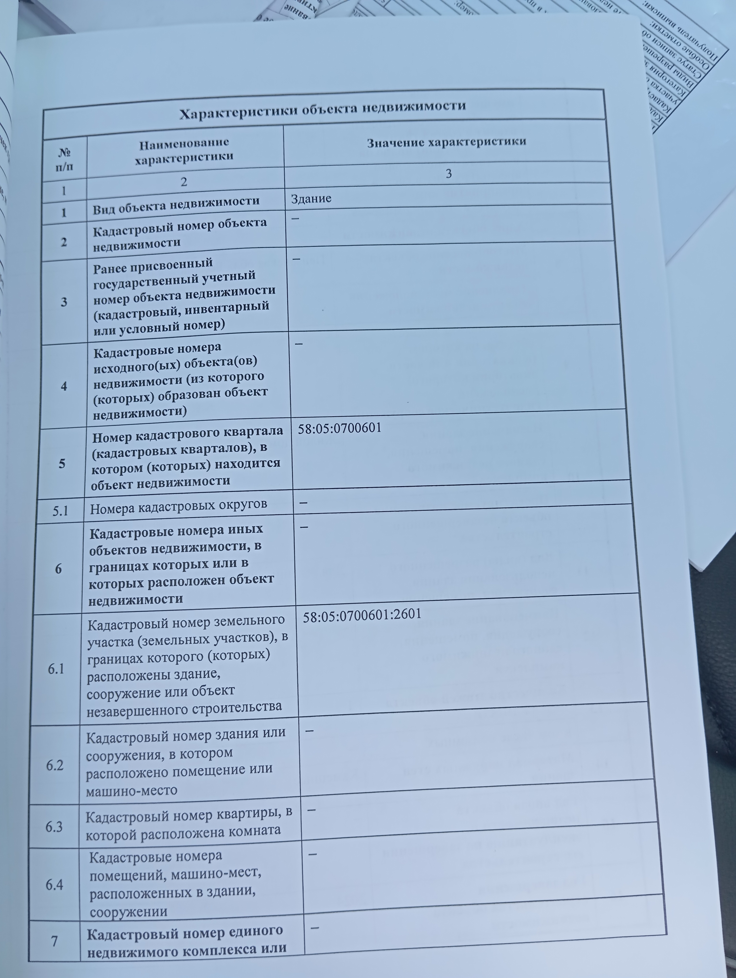 | Кадастровый номер участка | 58:05:0700601:2601 |