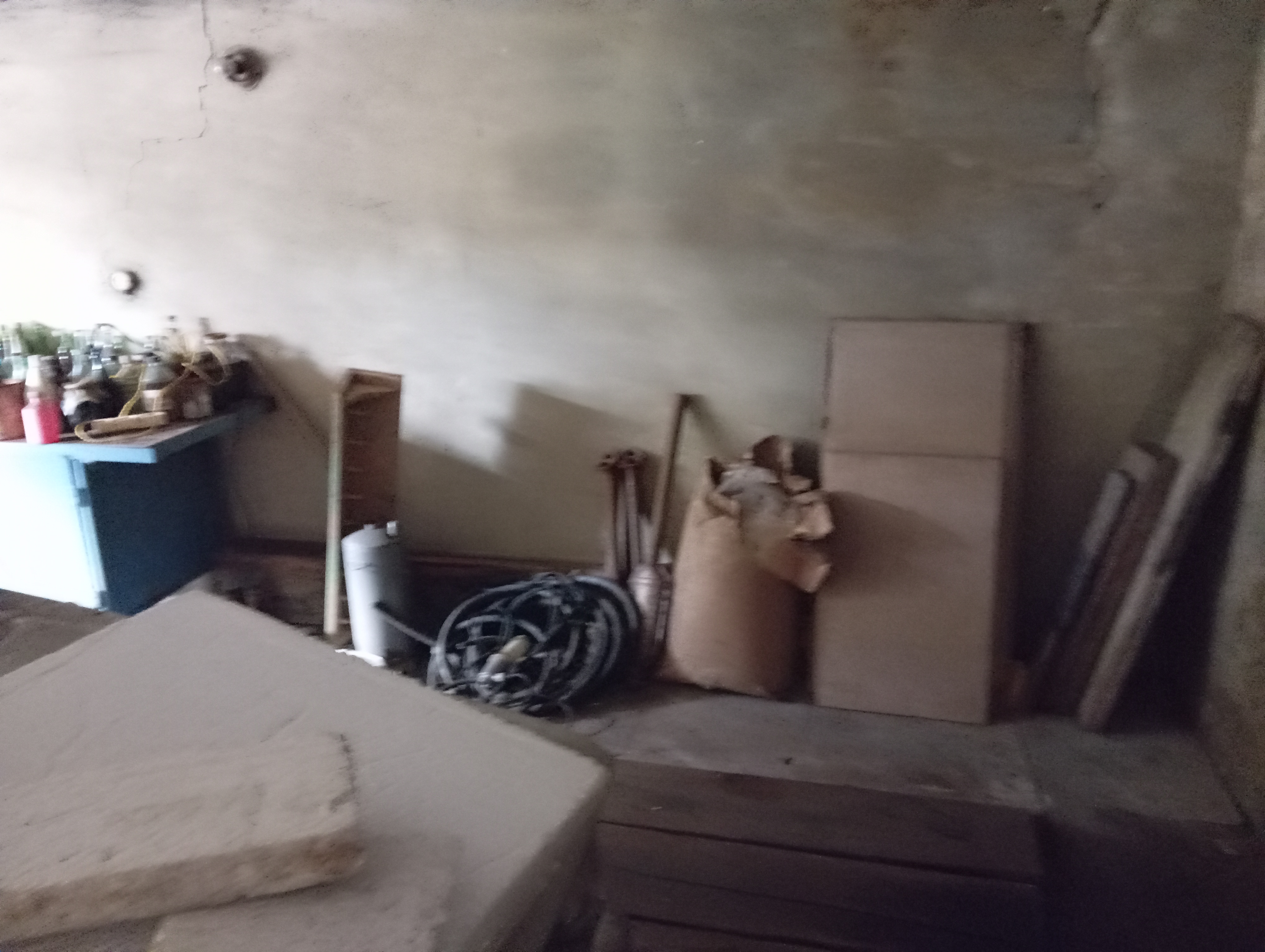 Площадь 18 кв. примерно 4,5 х 3,5, высота 2.2, есть погреб.