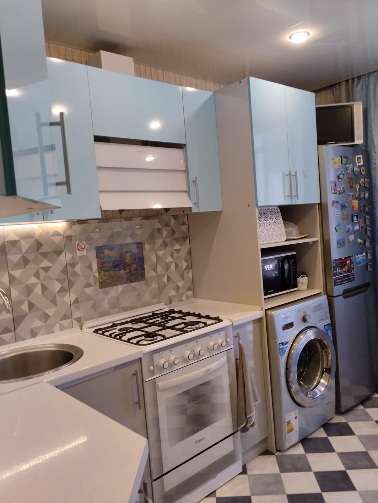 Отделка квартиры под ключ: пластиковые окна, радиаторы отопления, установка приборов учета воды, света, обои, линолеум, с/у в кафеле, панели ПВХ, точечные светильники, натяжные потолки, межкомнатные двери, входная металлическая дверь.