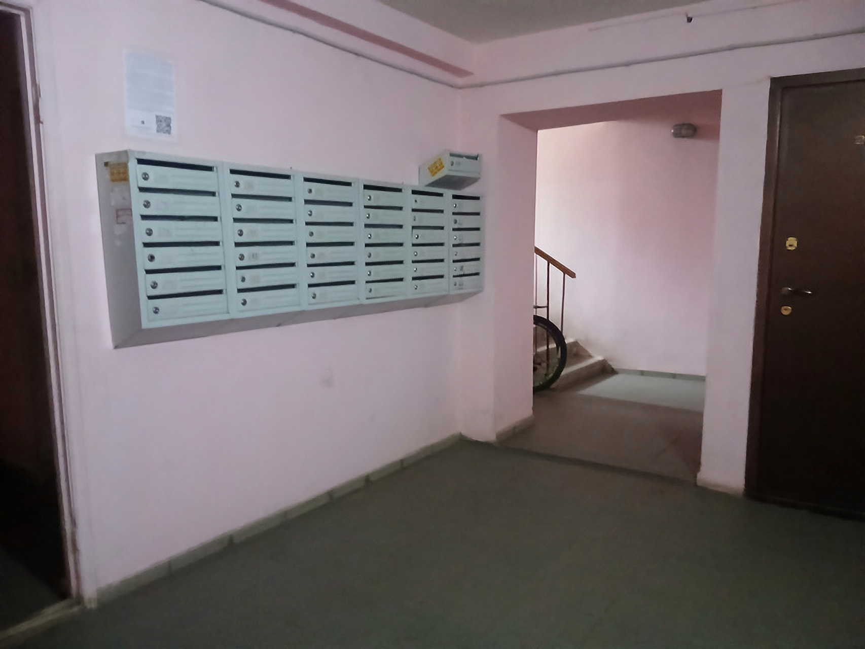Тамбур на 2 квартиры. Просторная лестничная клетка, где можно хранить велосипед/коляску.