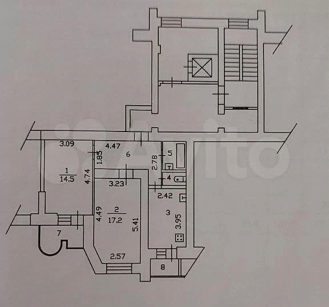 Жилая плoщaдь 32 кв.м. Две просторные комнаты 17,2 и 14,5 кв.м. квадратной формы. Кухня 11,3 кв.м.
