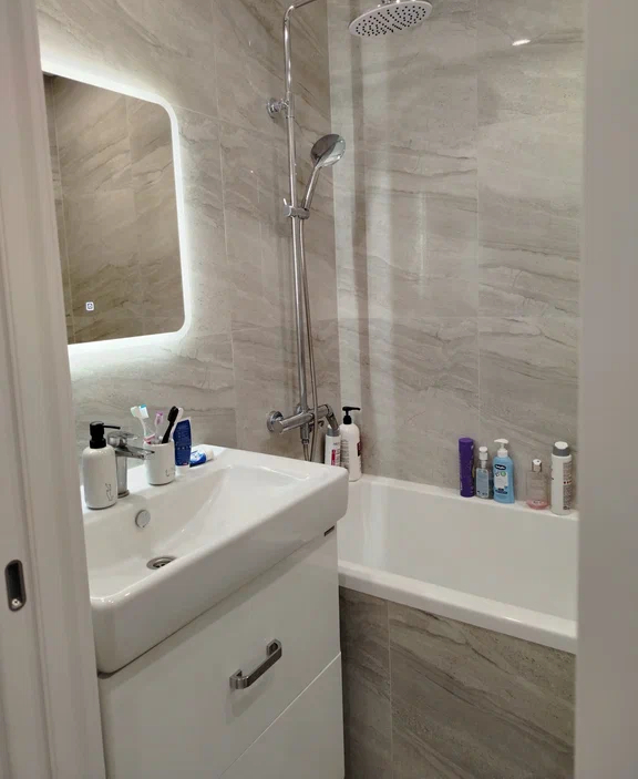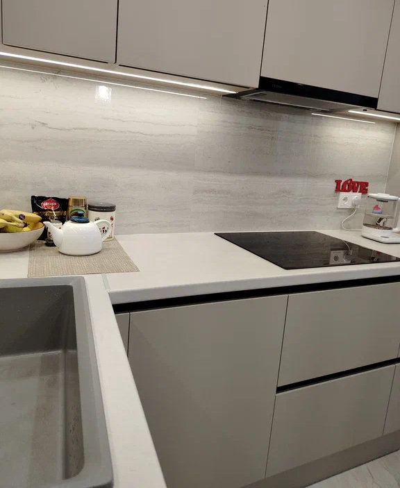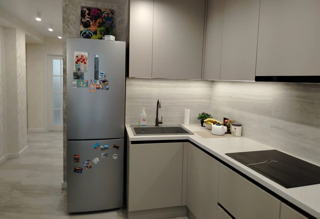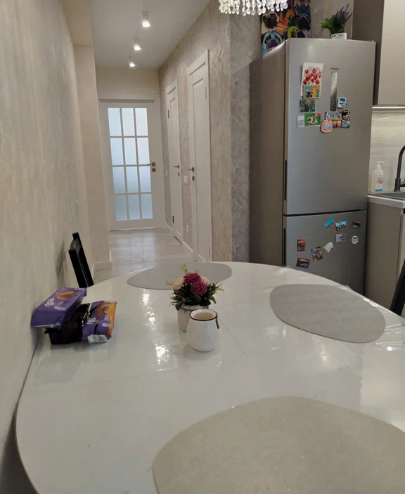 В квартире сделан современный качественный ремонт, - на полу в жилых комнатах ламинат, в коридоре и на кухне керамогранит, - установлены межкомнатные двери, - натяжные потолки с точечным и основным светом, - установлена встроенная кухонная мебель с индукционной варочной панелью, духовым шкафом и вытяжкой. - санузел раздельный в плитке. - вход в подъезд начинается со стеклянных входных групп, расположенных на уровне земли - подъезде два лифта грузовой и пассажирский лифт, имеется места для хранения велосипедов и колясок - вход в подъезд начинается со стеклянной входной группы, расположенной на уровне земли