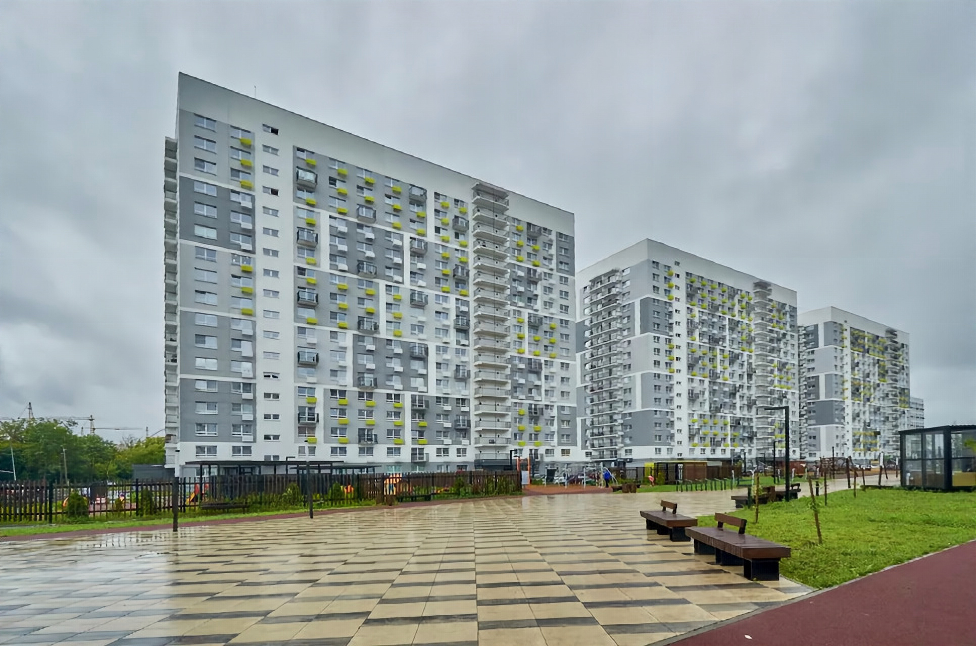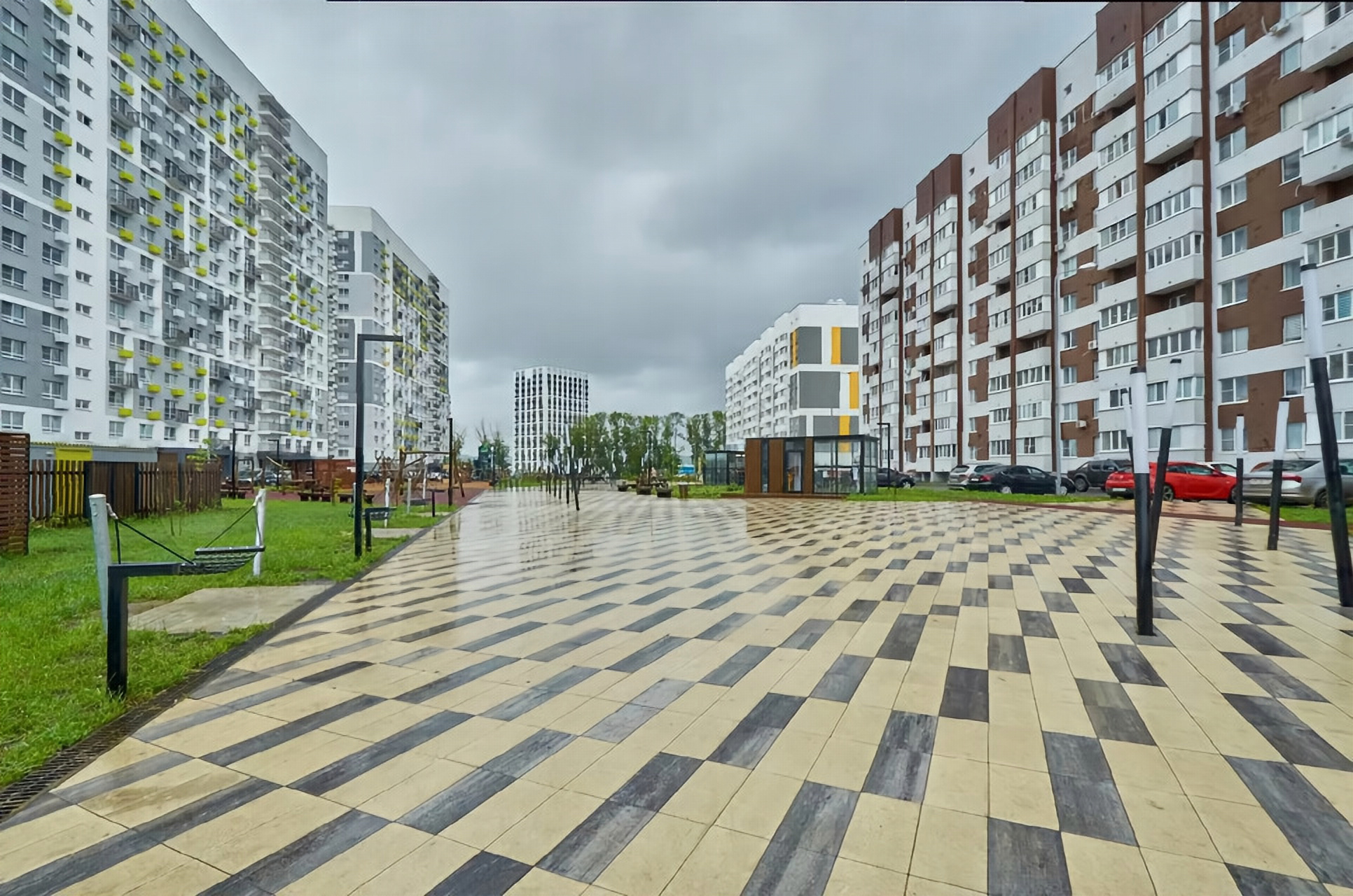 На первом этаже расположена колясочная, лапомойка для домашних питомцев. Просторная входная группа с уютной гостевой зоной в подъезде. Вход в подъезд с уровня земли. На территории дома предусмотрены современные игровые комплексы, спортивные площадки, парковка.