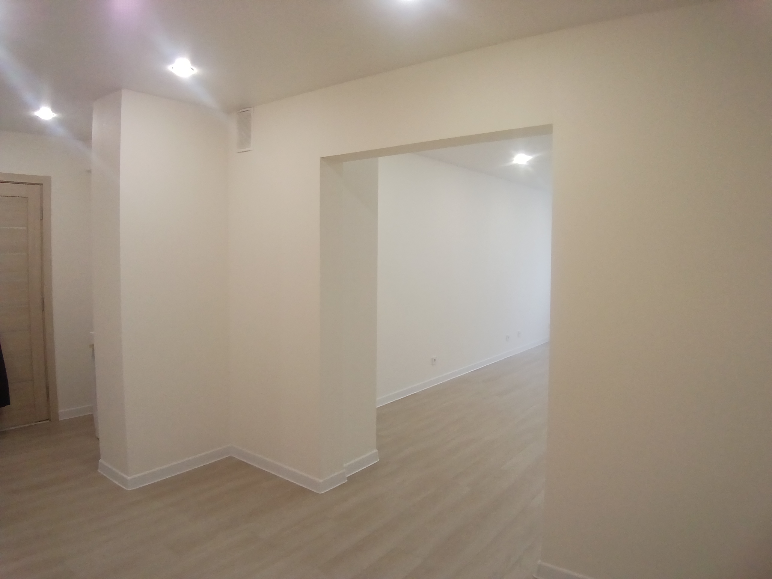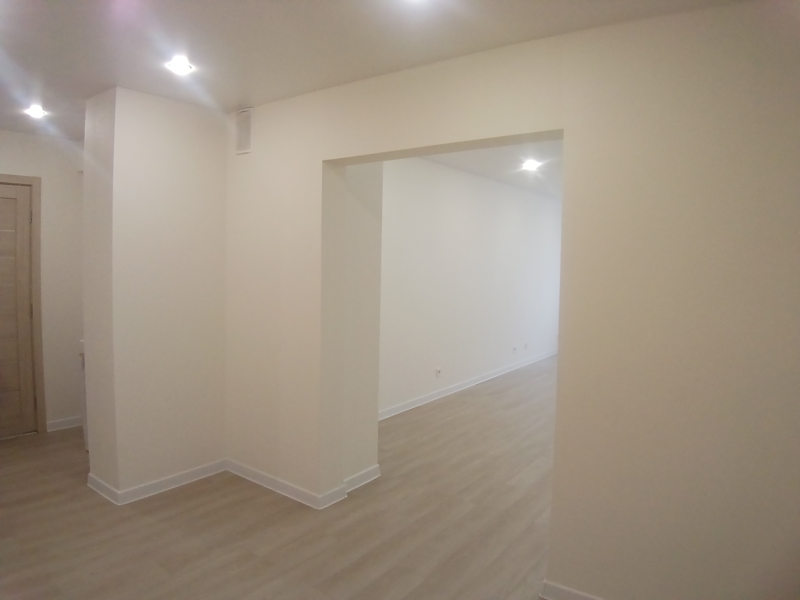Отделка под ключ: входная металлическая дверь; межкомнатные двери из эко-шпона; пластиковые окна класса А+ (высокая шумоизоляция и энергосбережение); натяжные потолки с точечными светильниками; флизелиновые обои под покраску (возможно перекрашивание до 8 раз); счётчики на отопление и воду; совмещённый санузел (отделан плиткой КЕRАМА МАRАZZI, оснащён акриловой ванной с экраном, сан фаянсом, стиральная машина); на полу ламинат светлых оттенков 33 класса; кухонная мойка из нержавеющей стали.