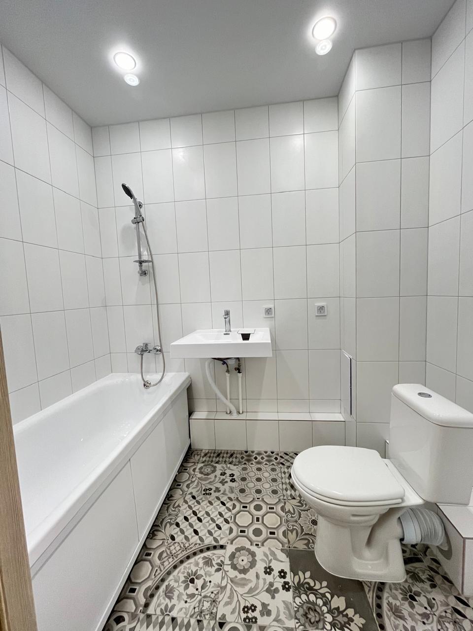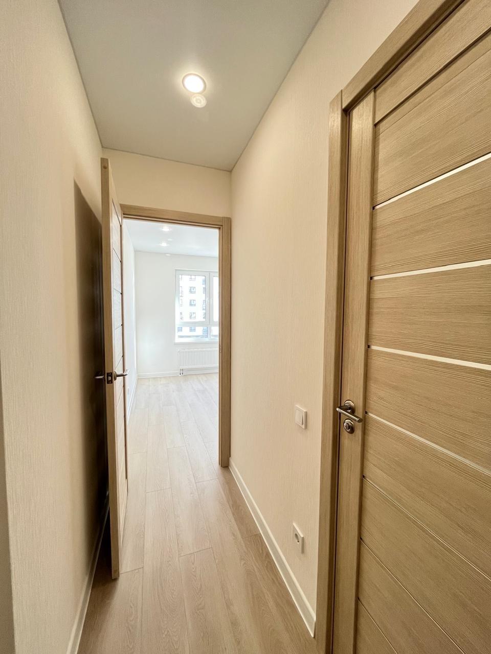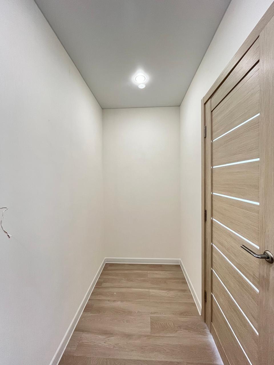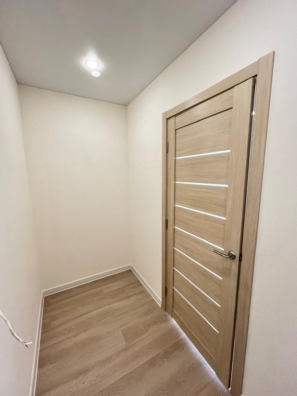 Шпонированные межкомнатные двери — стиль и долговечность. Пластиковые окна с тройным остеклением класса А+ — тепло и тишина круглый год. Натяжные потолки с точечными светильниками — современный дизайн и комфортное освещение. Электросчетчик, розетки и выключатели — всё готово к использованию. Ламинат 33 класса на полу — прочность и эстетика. Стены отделаны керамической плиткой, а пол выполнен из керамогранита Kerama Marazzi — красота и практичность. Сантехника: акриловая ванная, экран под ванну, смесители Grohe, раковина, компактный фаянсовый унитаз, полотенцесушитель. В квартире остается кухонный гарнитур и встраиваемая техника, холодильник, стиральная машина.