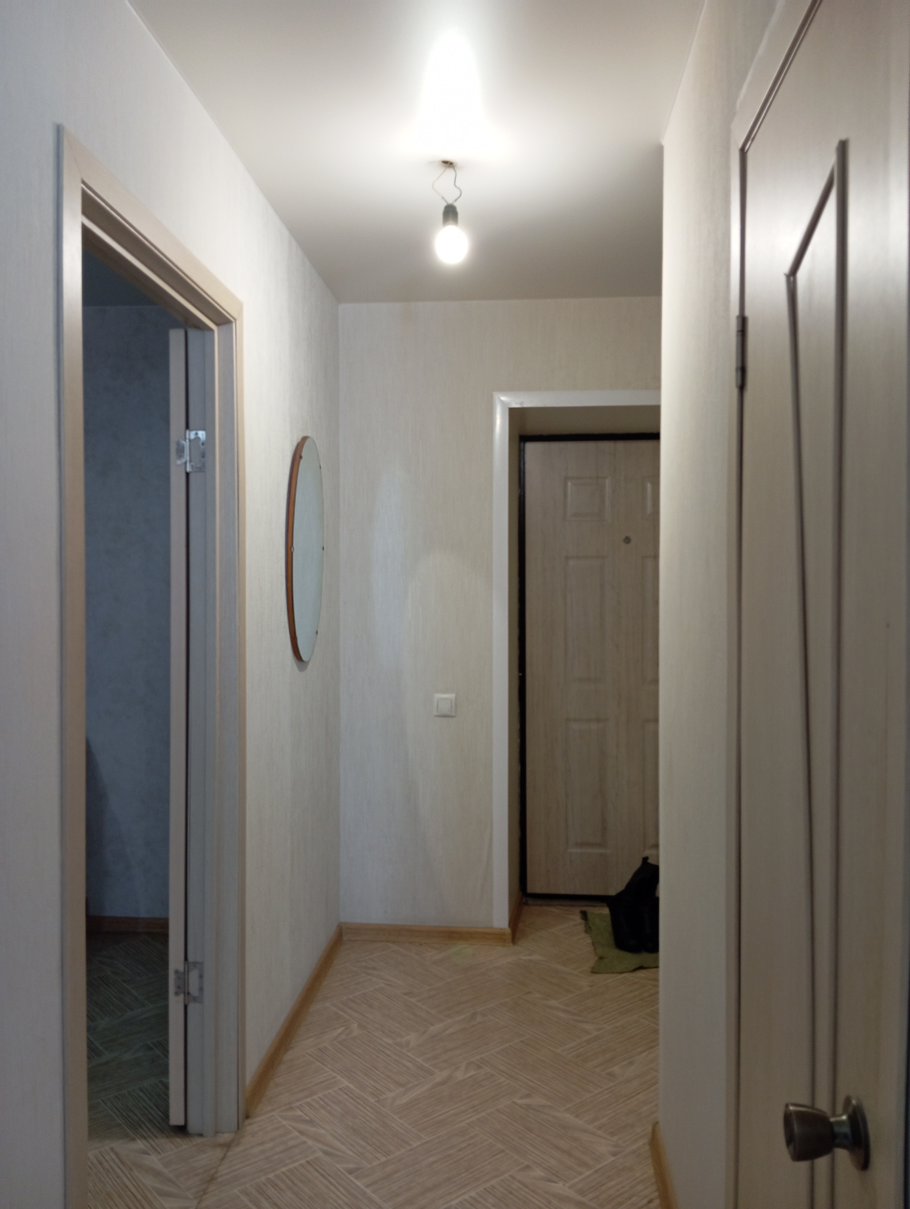 Новая разводка электричества, новая разводка труб, пластиковые окна, откосы, радиаторы отопления, установка приборов учета воды, света, с/у в современном кафеле, натяжные потолки, флизелиновые обои под покраску, коммерческий мягкий с утеплителем ленолиум, межкомнатные двери, входная металлическая дверь.