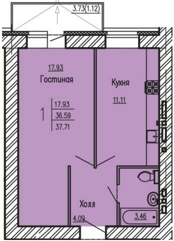 Площадь квартиры: 39,9 кв.м. с учетом балкона, без балкона 36,6 кв.м. Гостиная 17,9 кв.м., кухня 11,5 кв.м., коридор 4 кв.м., с/у 3,5 кв.м., 3,7 кв.м. балкон не застеклен.