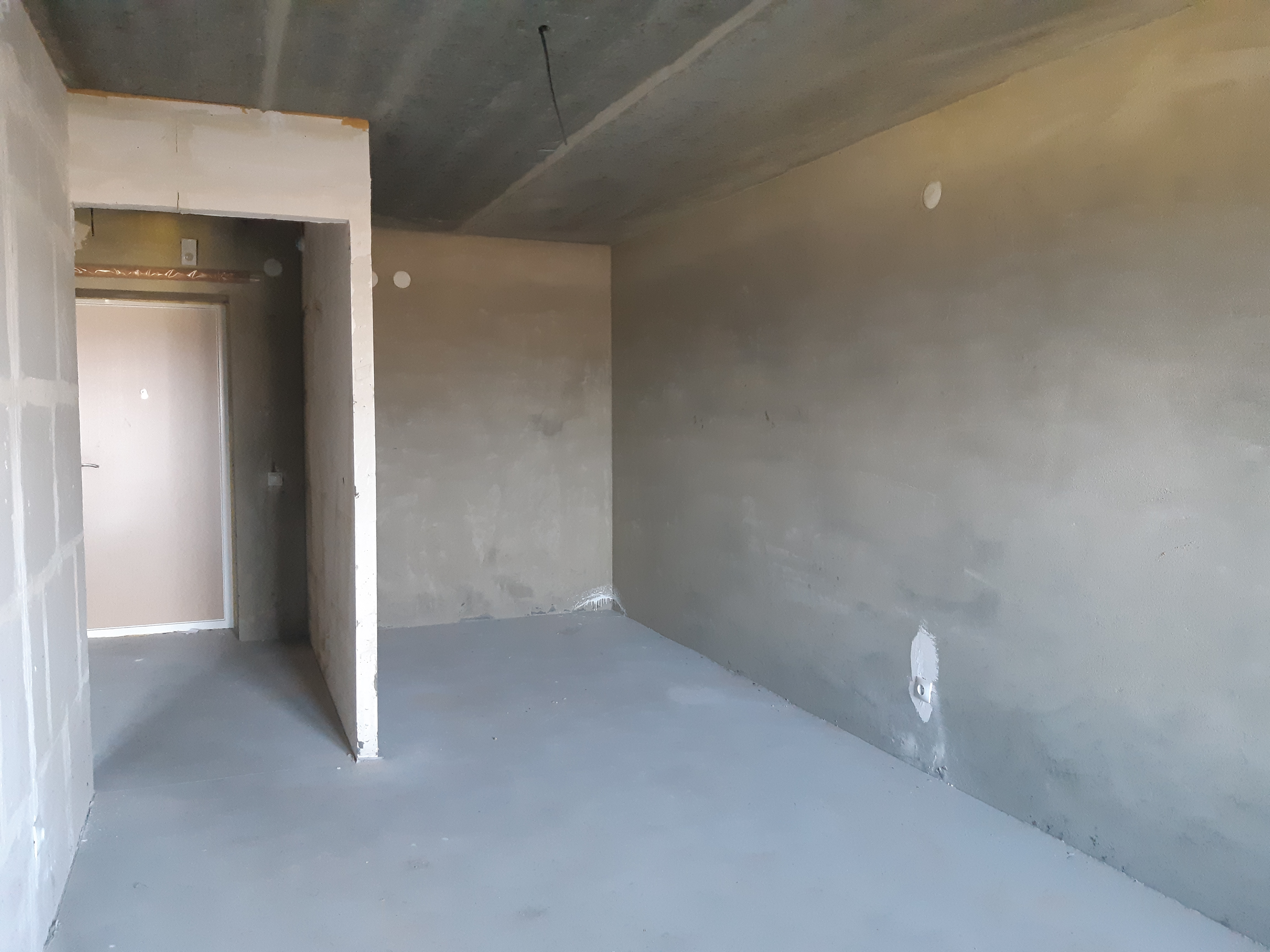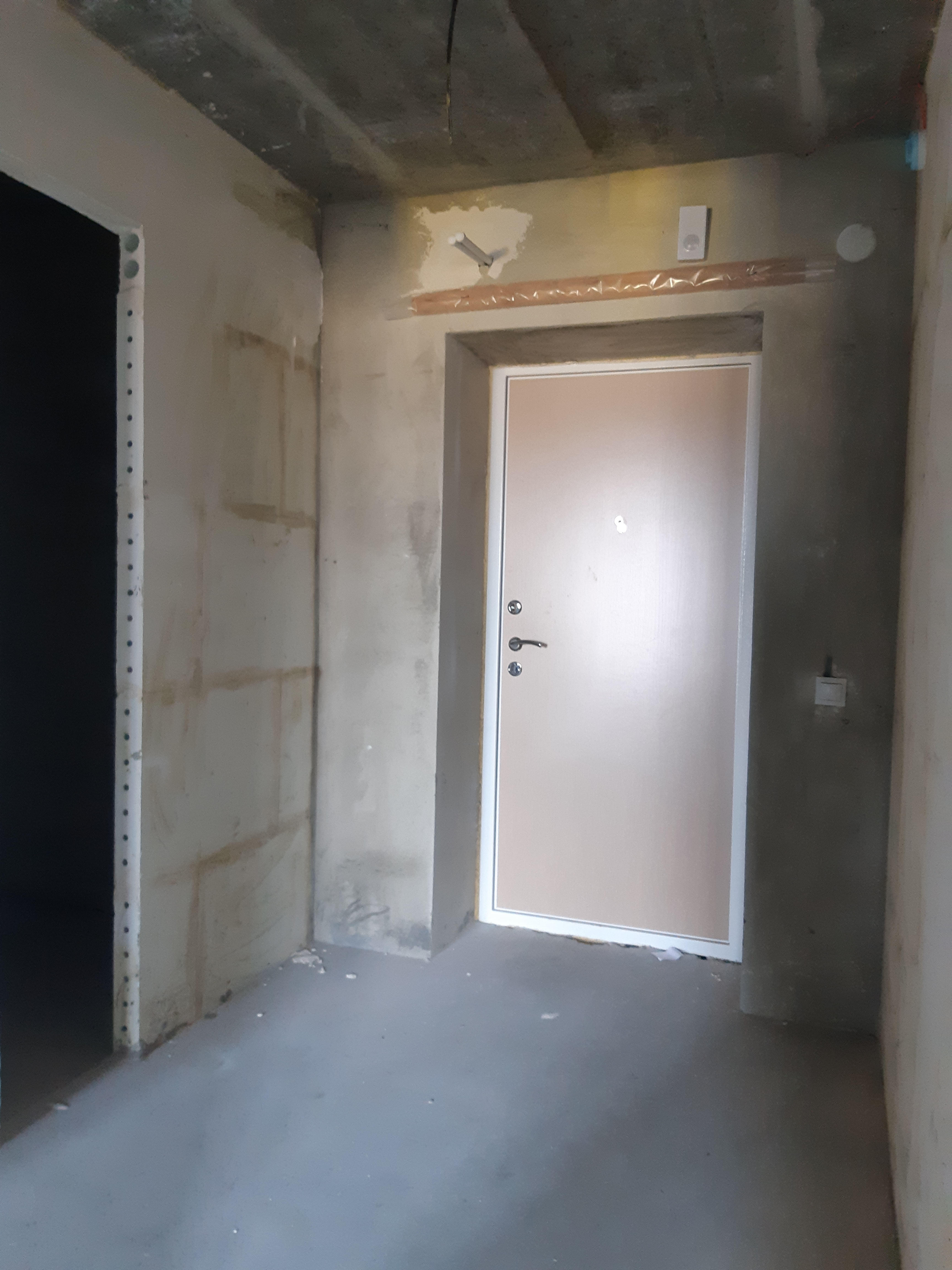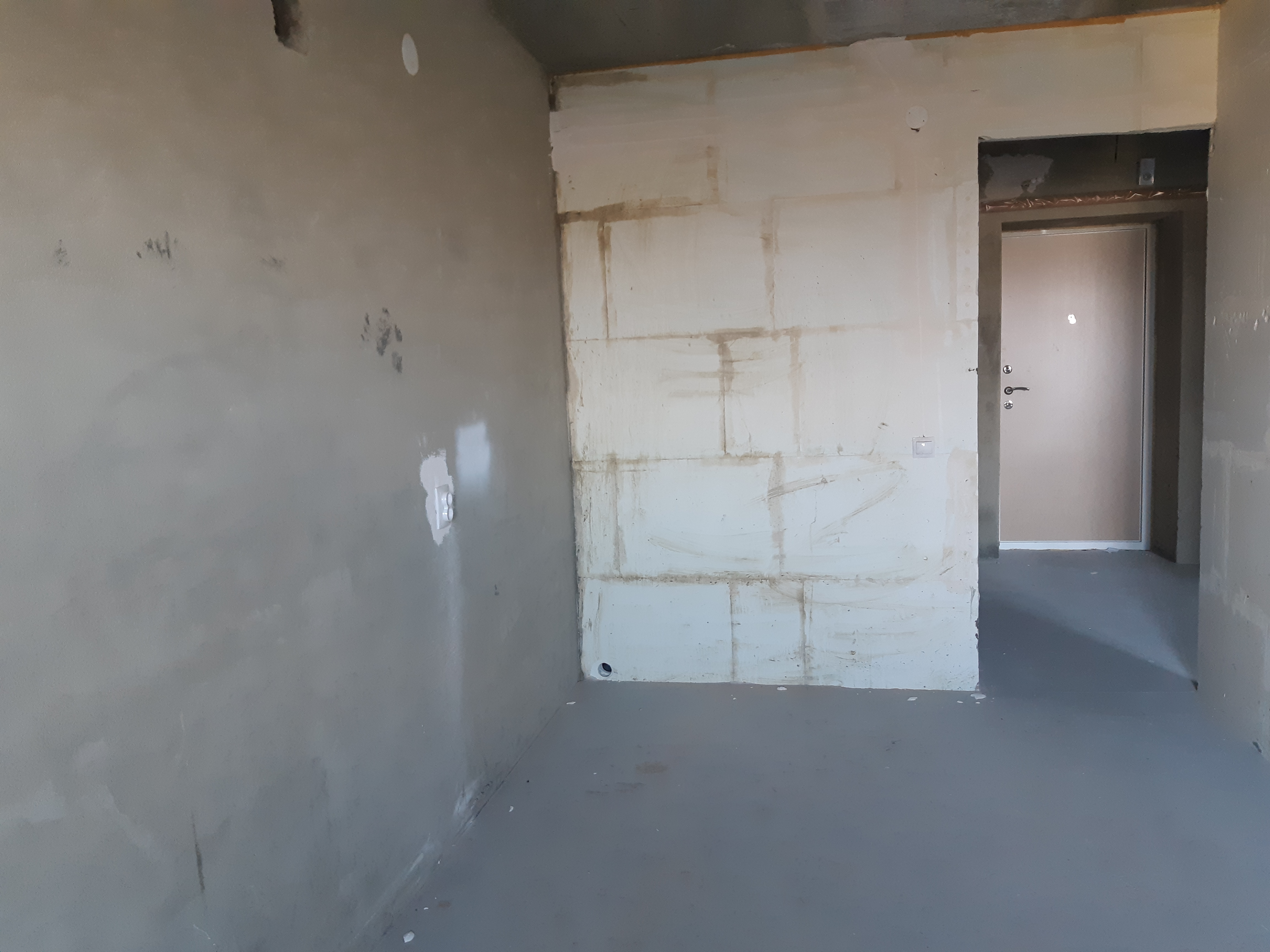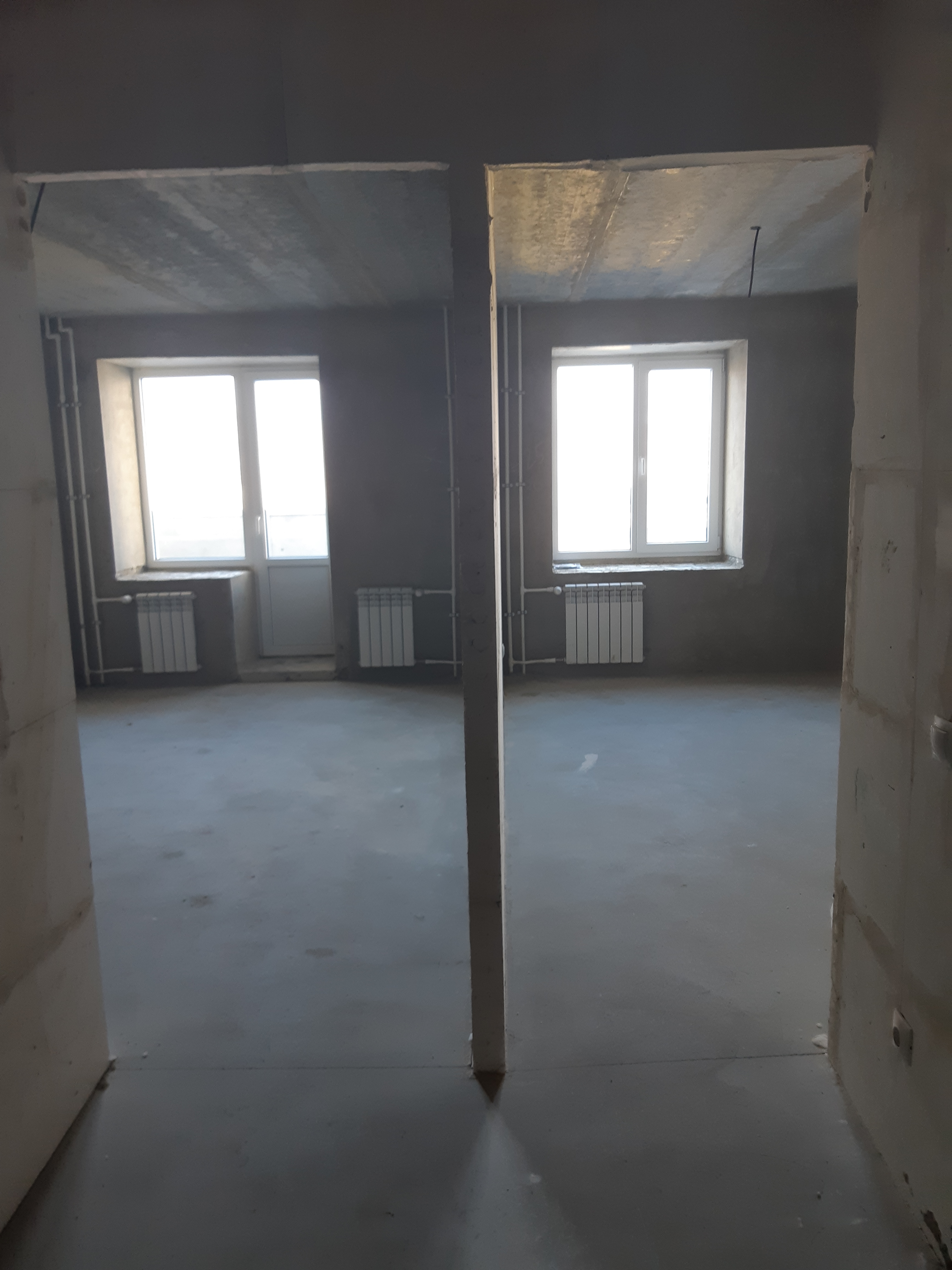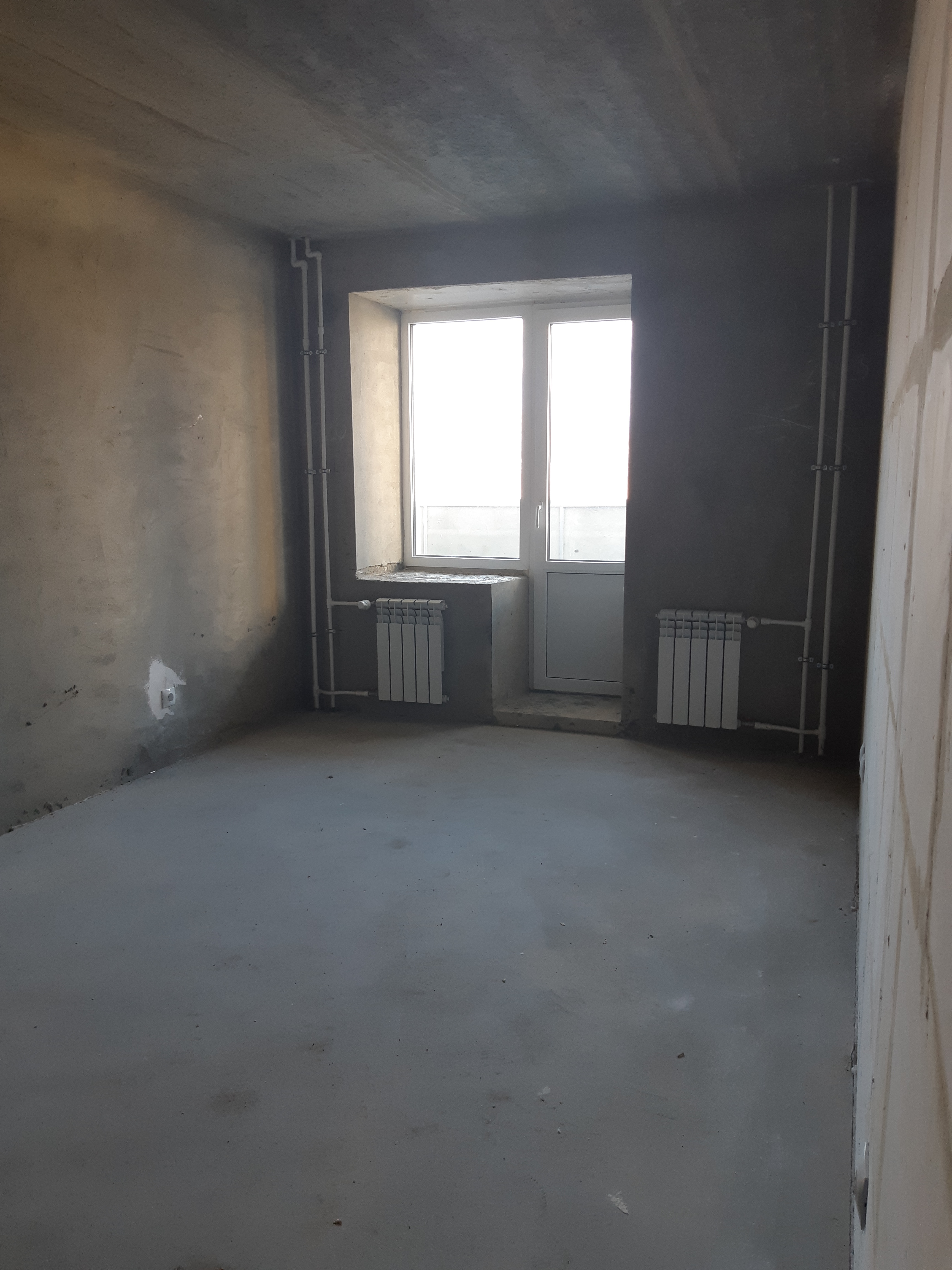 Предчистовая отделка квартиры : новая разводка электричества, новая разводка труб, пластиковые окна, откосы, радиаторы отопления, установка приборов учета воды, света, установлены перегородки согласно проектной документации, стяжка пола, штукатурка стен, шпатлевка под обои, входная металлическая дверь.