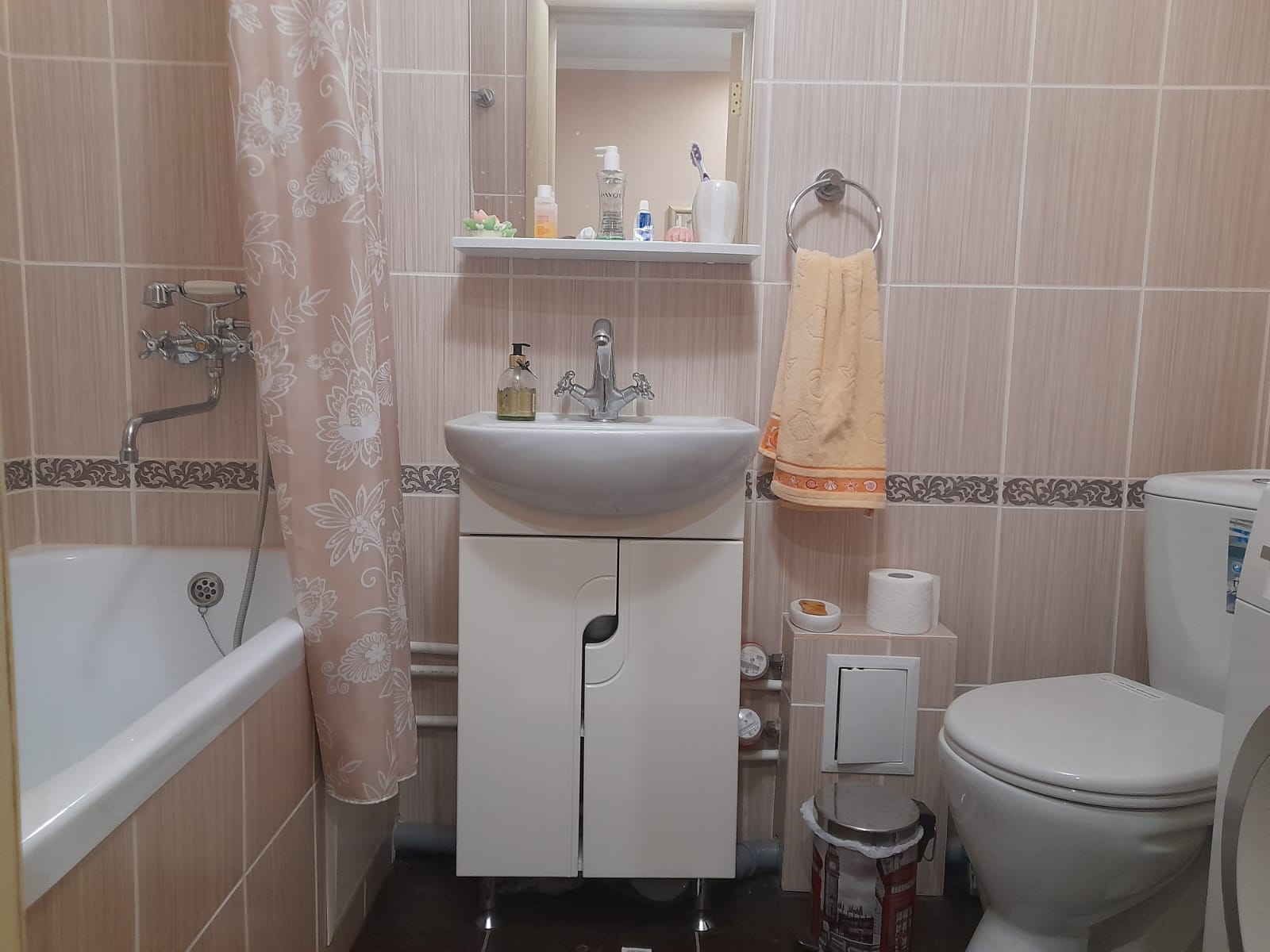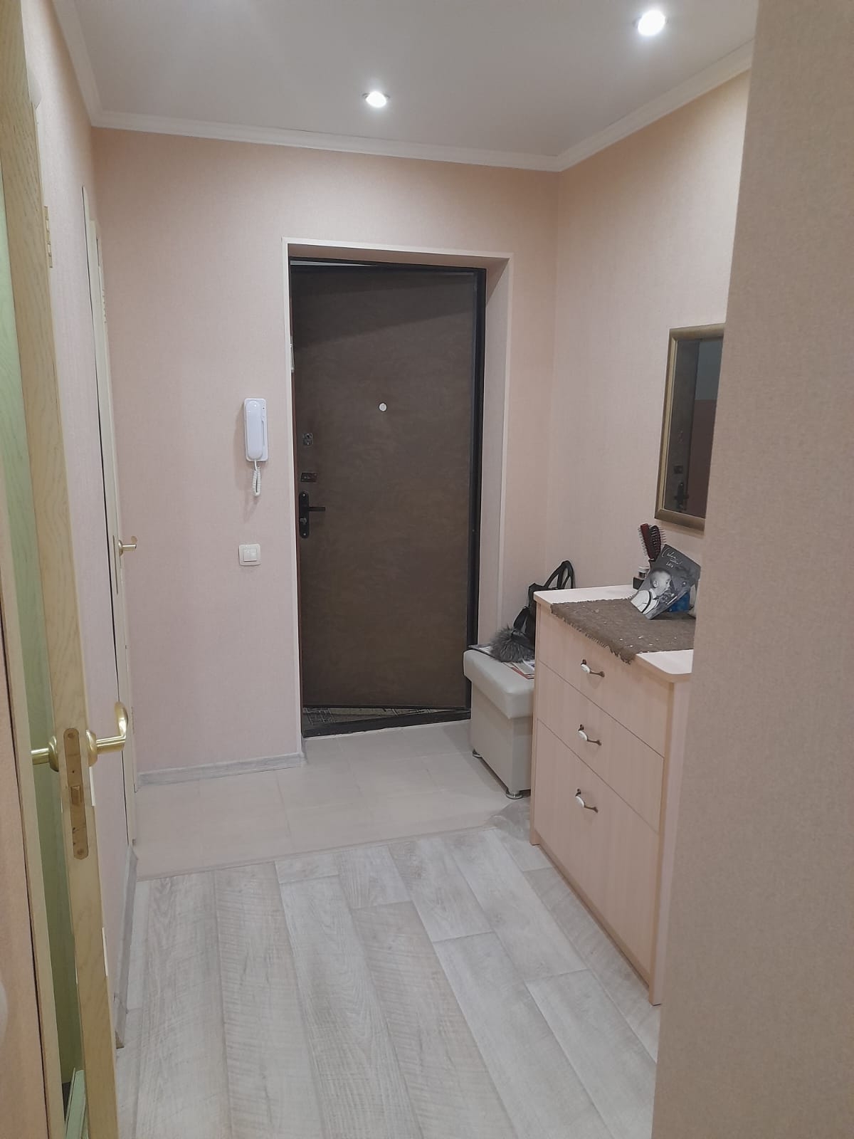 Современная квартира с ремонтом:- пластиковые окна;- балкон остеклен.- санузел совмещен;- пластиковые трубы;- установлены приборы учета воды; с/у в кафеле; - входная металлическая дверь, межкомнатные двери, обои, линолеум, плинтуса.