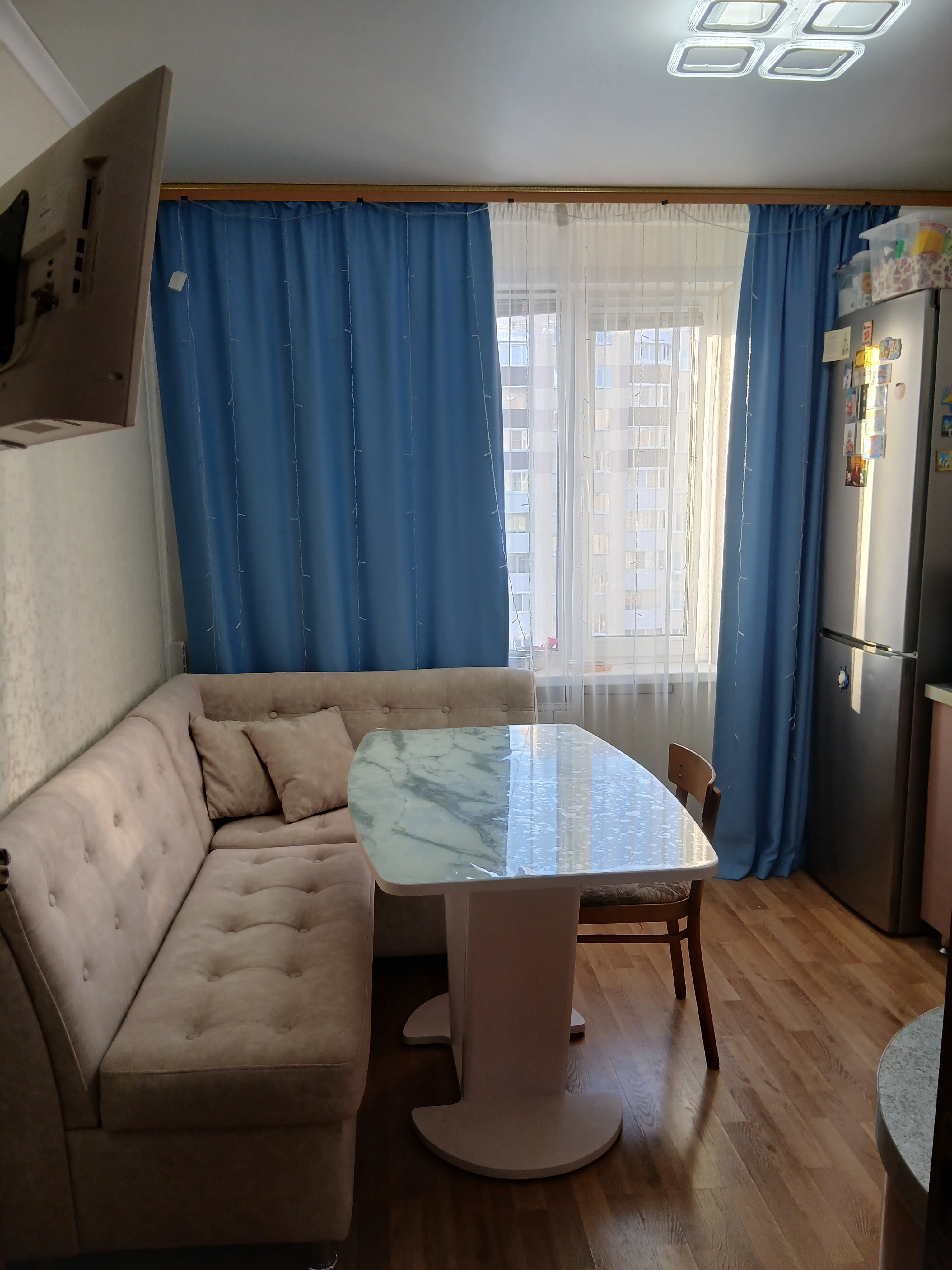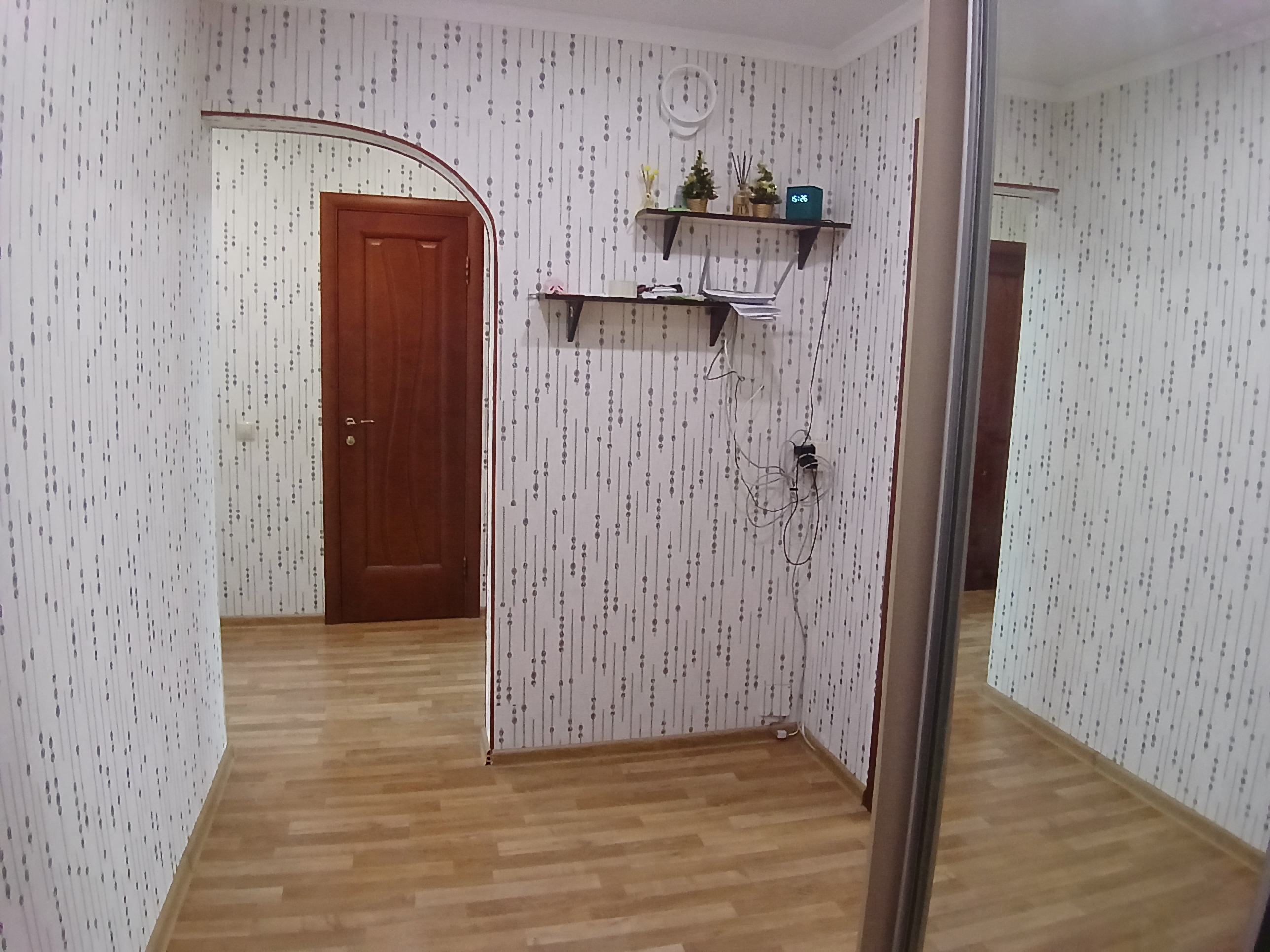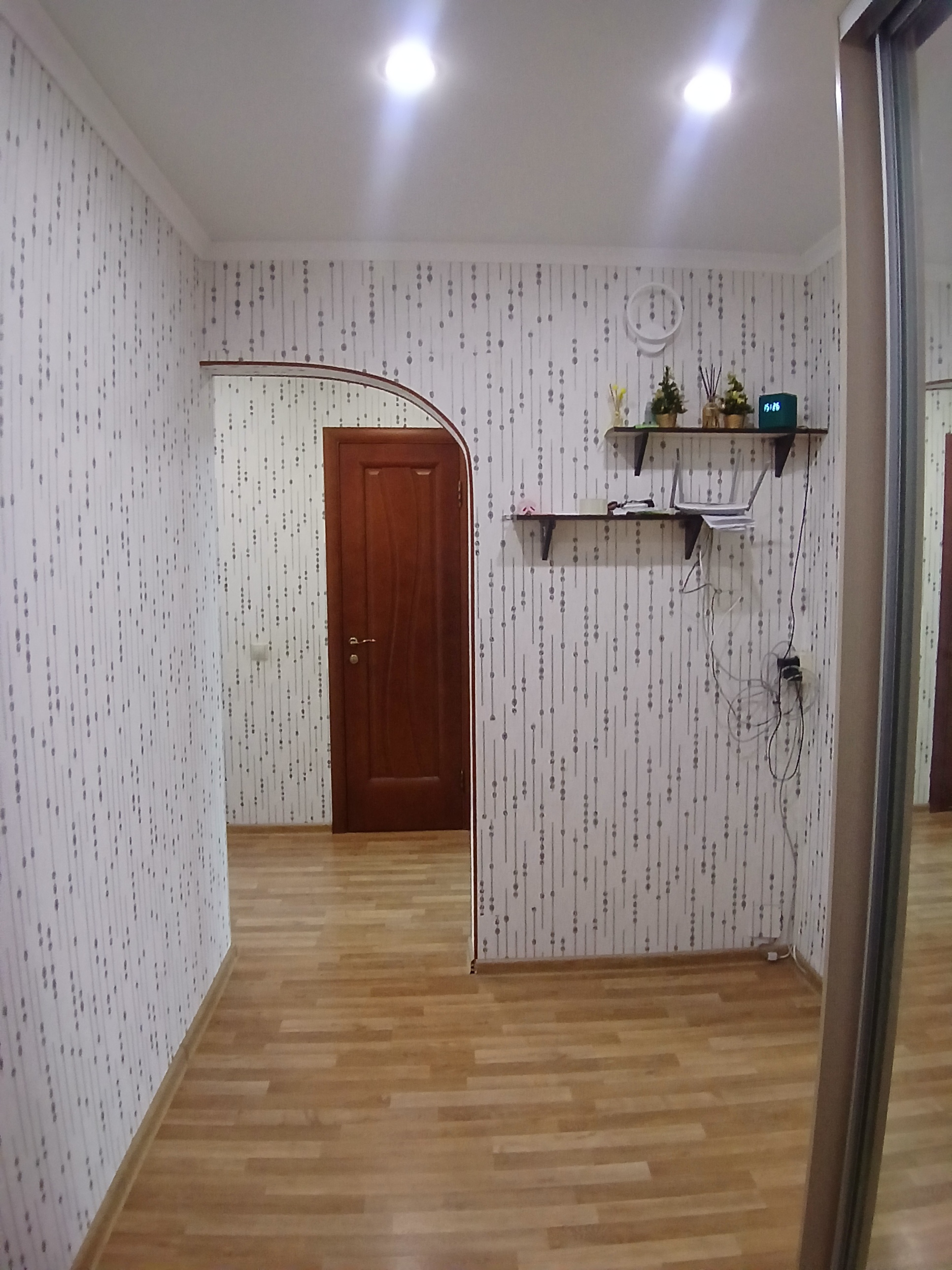 Отделка квартиры: в квартире выполнен ремонт, обои, ламинат, натяжные потолки , разводка электричества по квартире, пластиковые окна, аллюминивые радиаторы отопления, сантехника, установлен водонагреватель, установка приборов учета воды, электричества, лоджия утеплена и застеклена, межкомнатные двери, входная металлическая дверь.