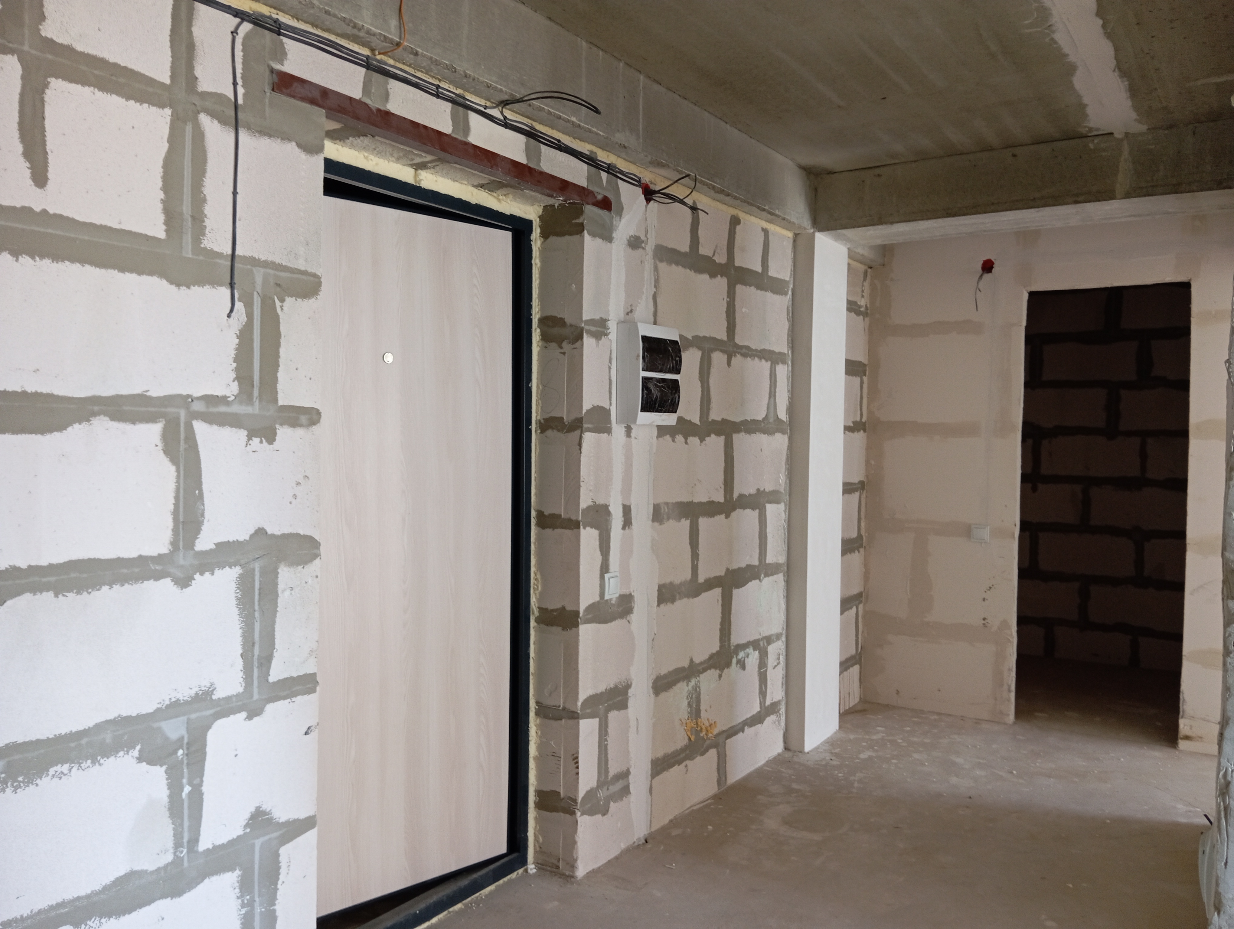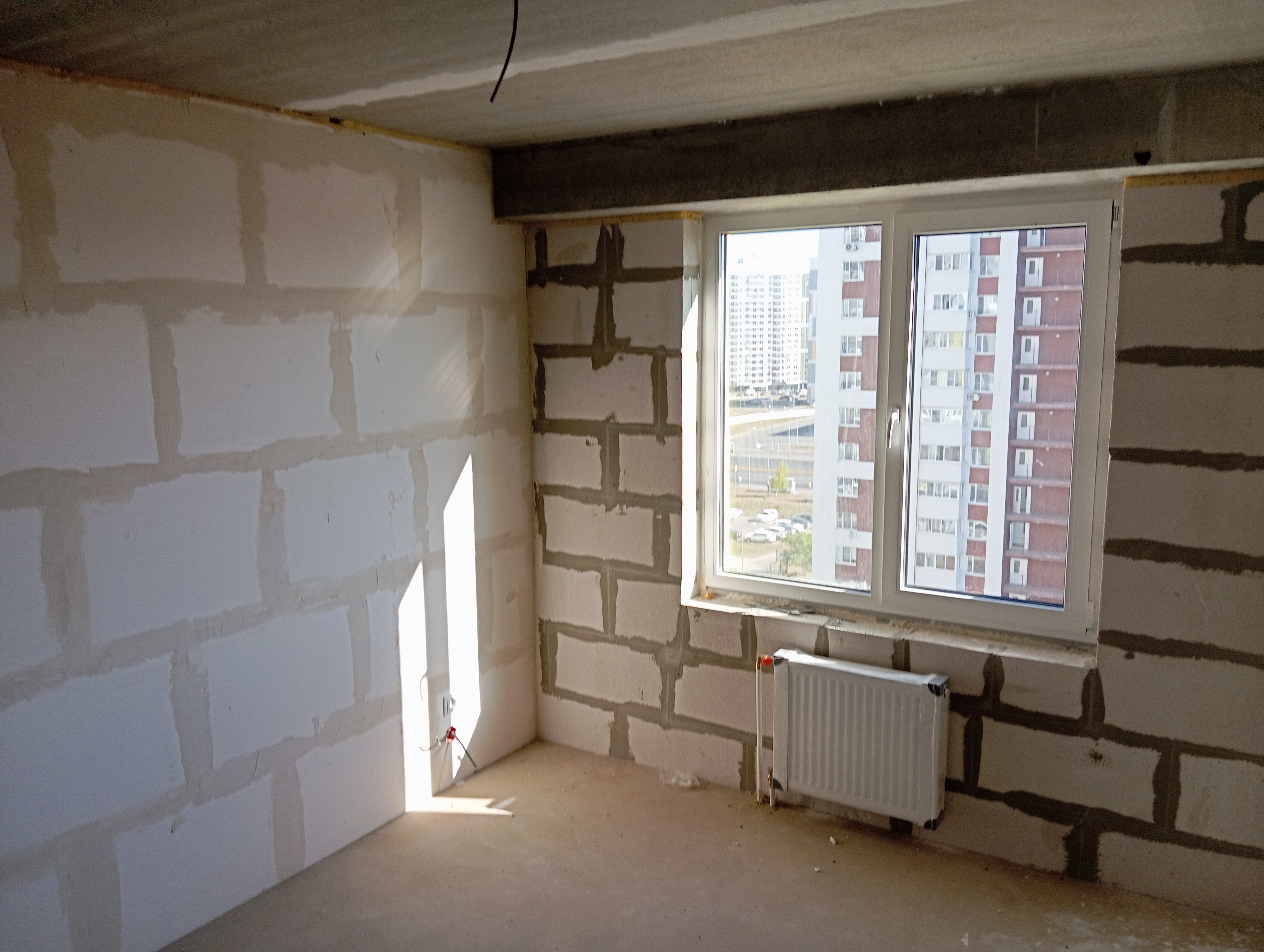 Отделка квартиры предчистовая: стяжка пола, штукатурка стен, разводка электричества по квартире, пласт.окна, радиаторы отопления, установка приборов учета воды, электричества.
