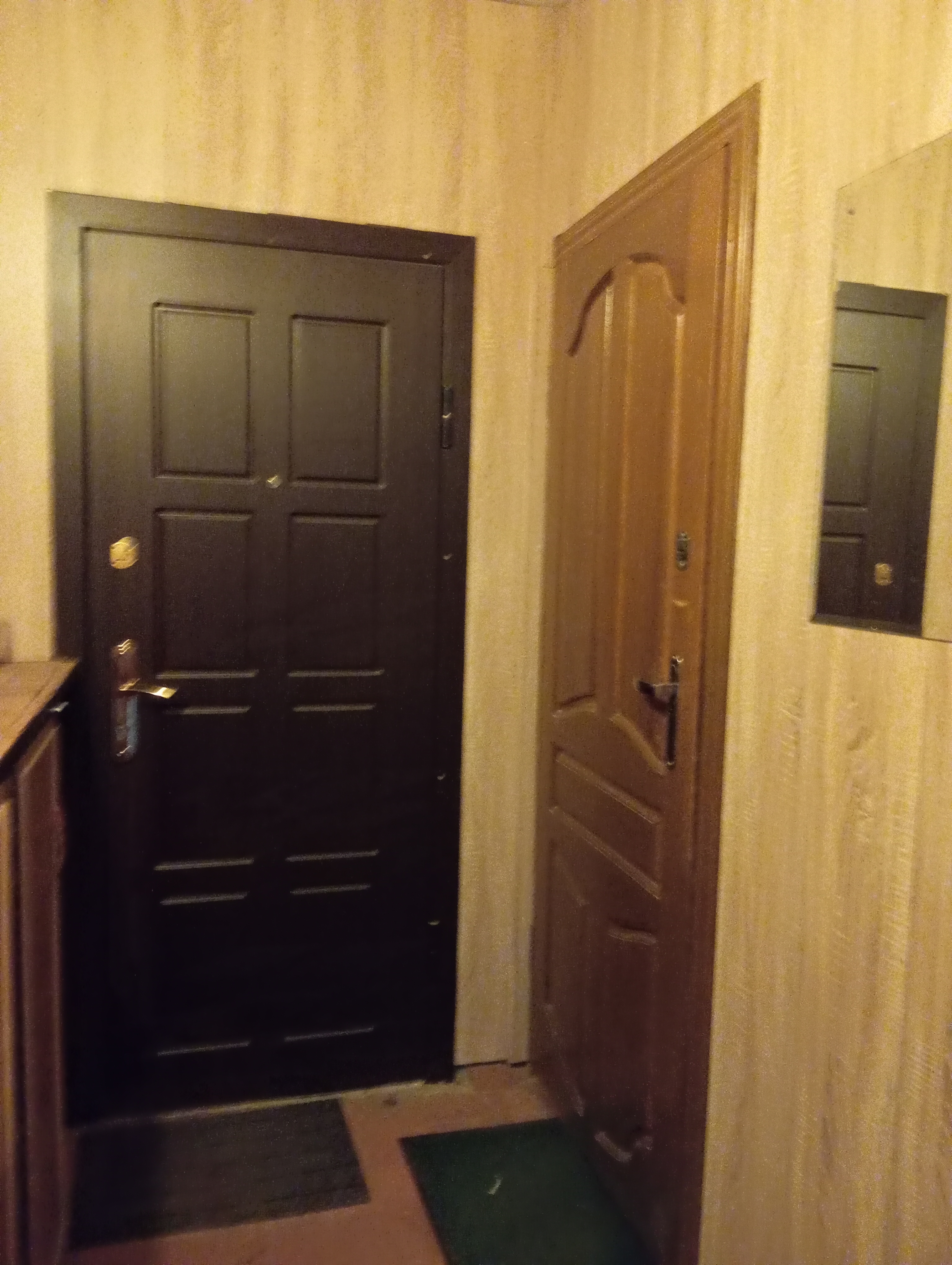 Уcтановлeна вхoднaя мeтaлличеcкaя дверь. Окна деревянные. На полу - линолeум. Сан.узeл раздeльный( в кафеле современного образца), установлены счетчики горячей и холодной воды. Большая Лоджия - остеклёна.
